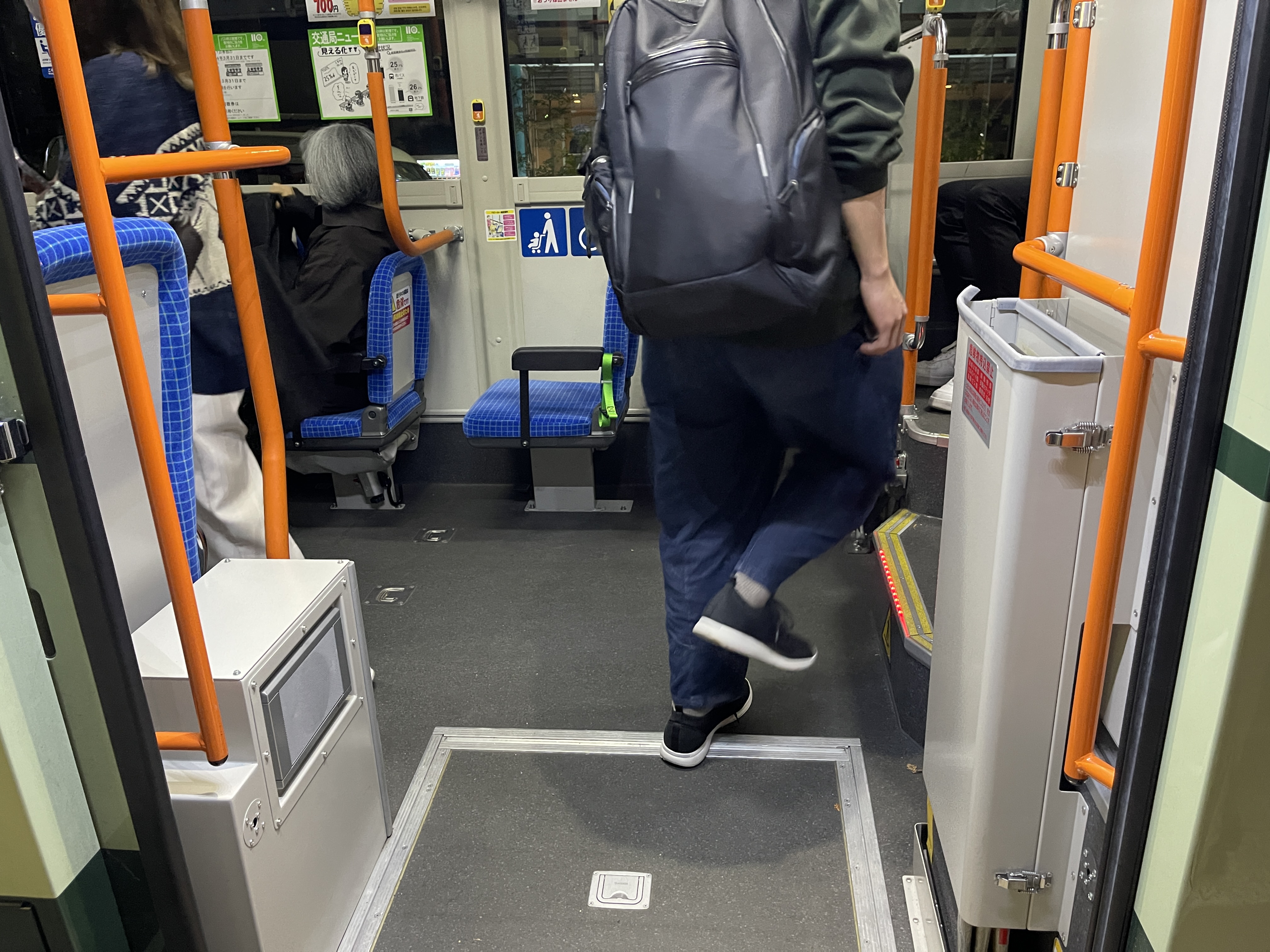 반면 구간요금 버스는 뒷문에도 카드 투입구가 달려있습니다.