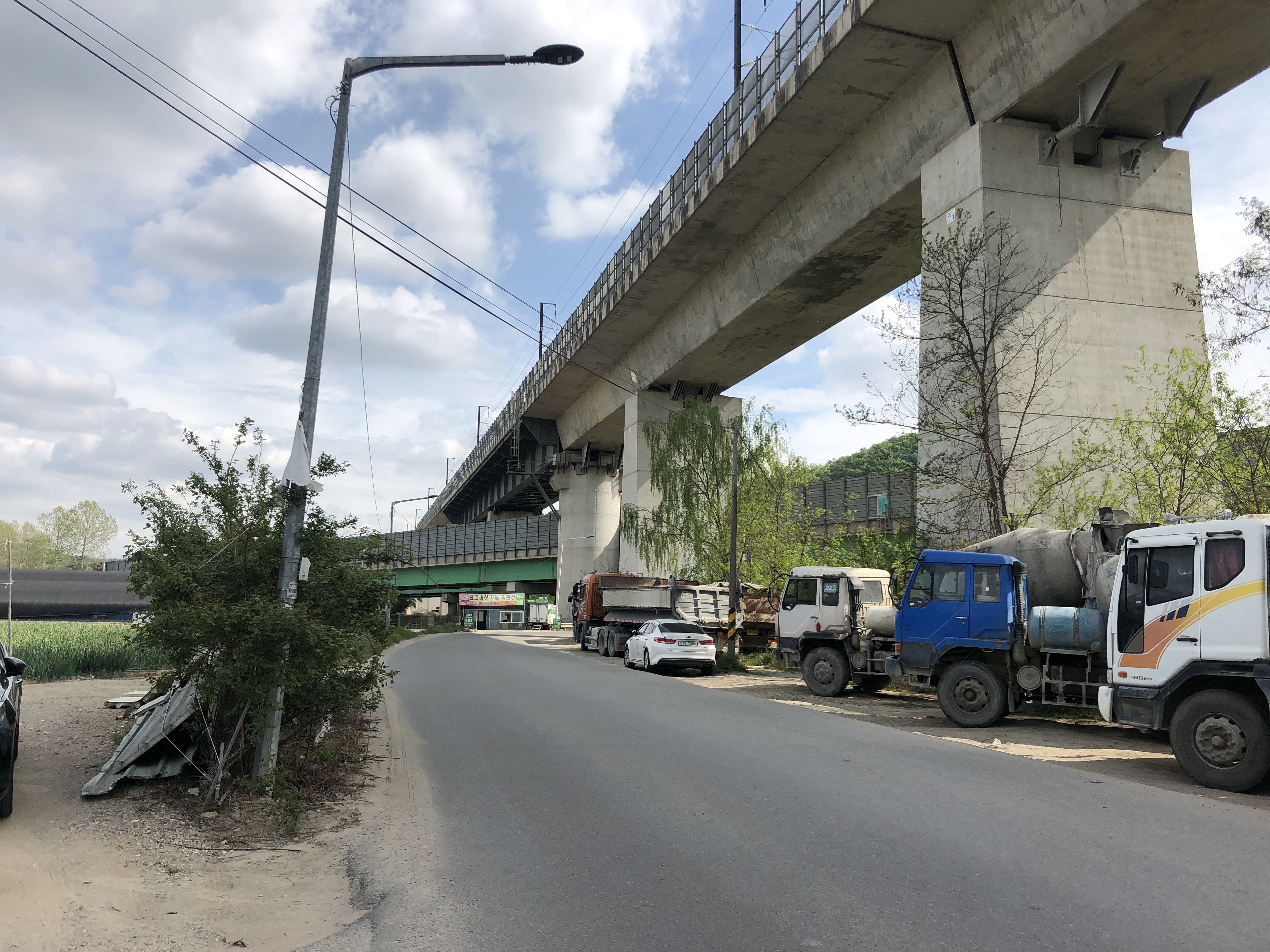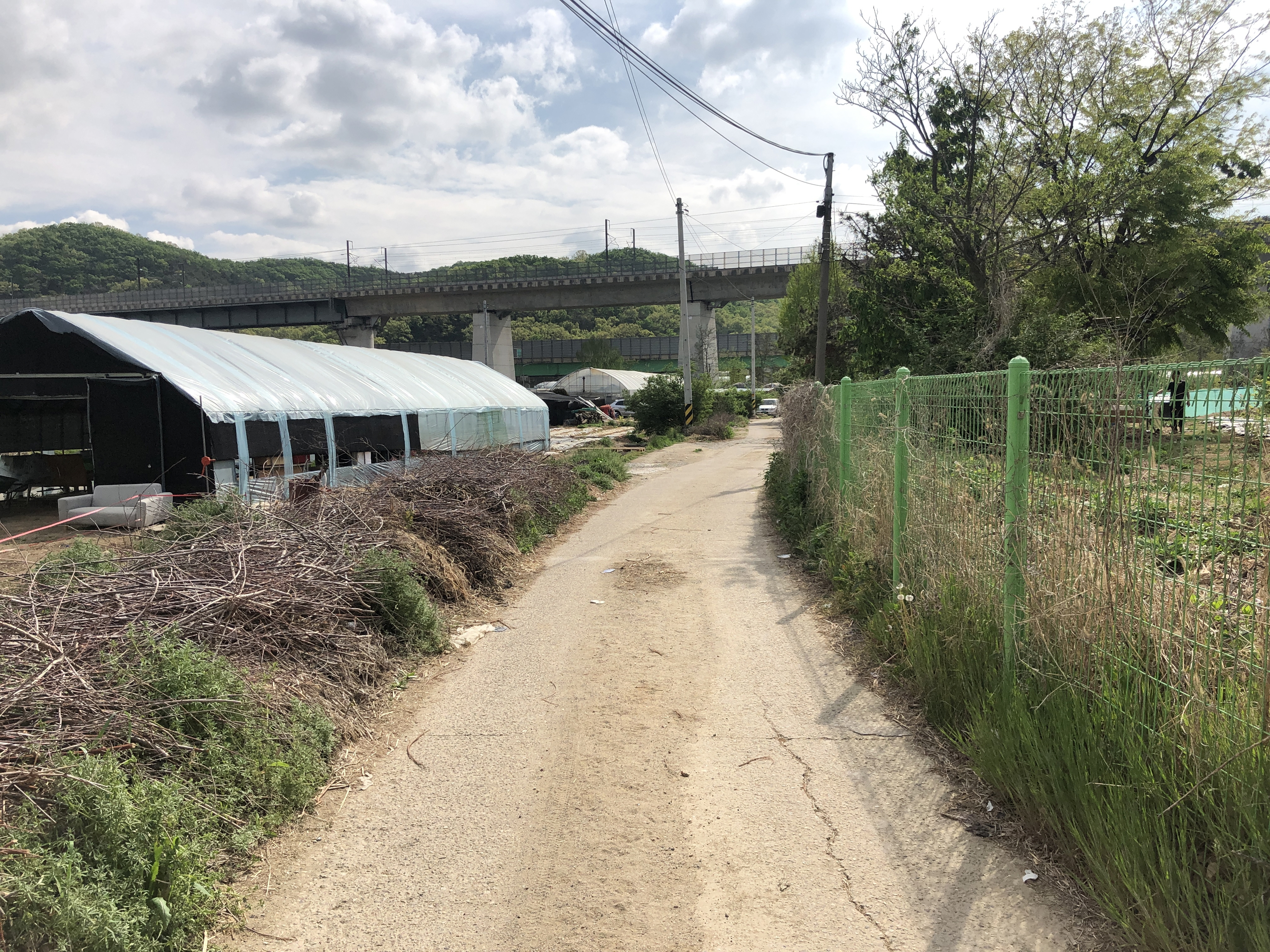 고속철도 아래로 난 길을 걸어