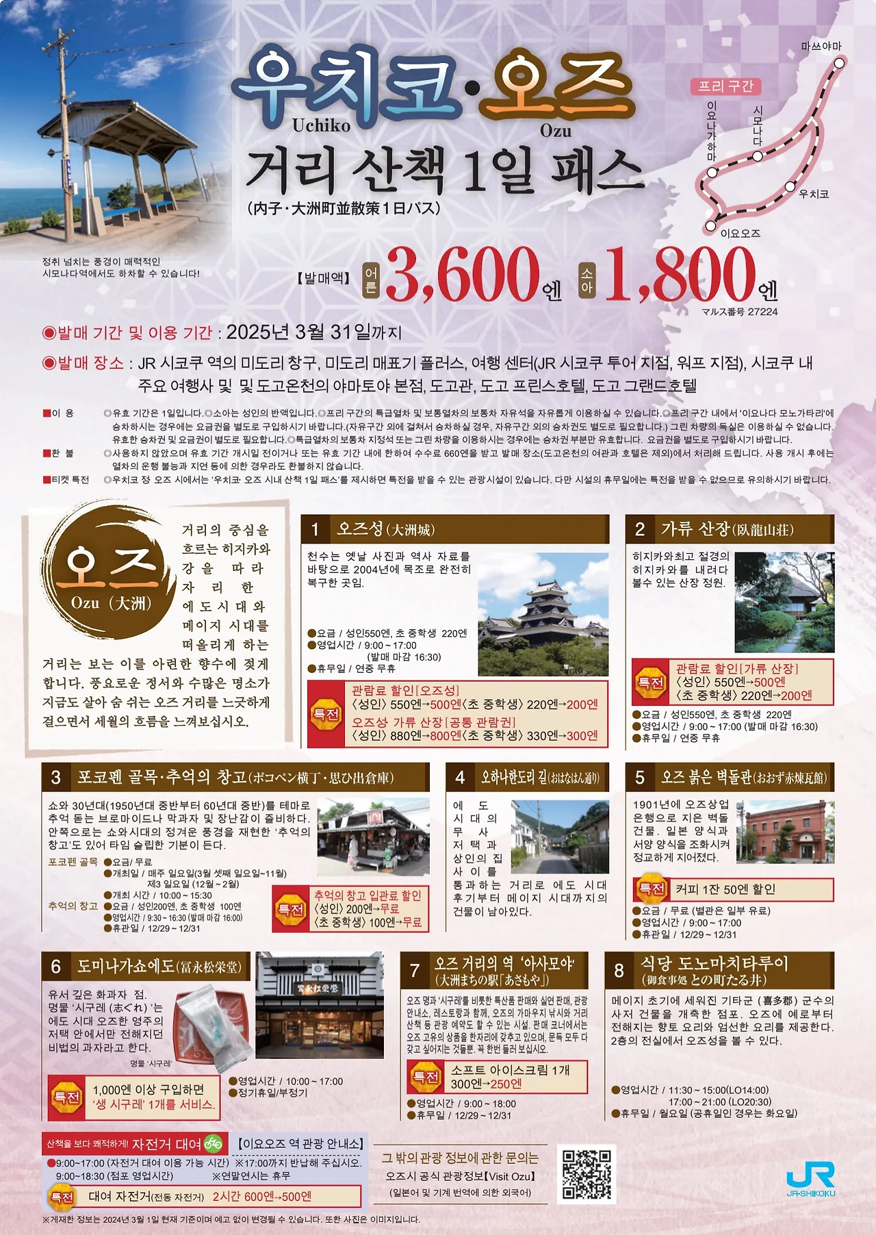 우치코 오즈 거리 산책 1일 패스(内子・大洲町並散策1日パス, 우치코 오즈 마치나미 산사쿠 이치니치 파스)인데