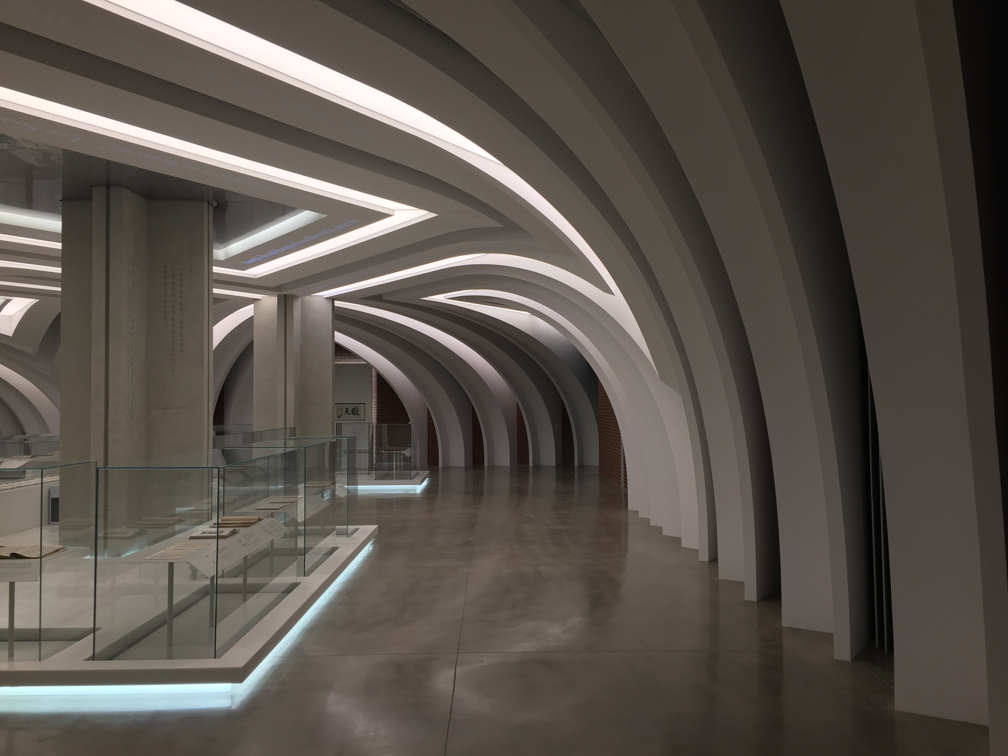 유럽에 있는 성당 건축을 본딴 듯한 기둥 주변에 전시물을 놓고 있네요.
