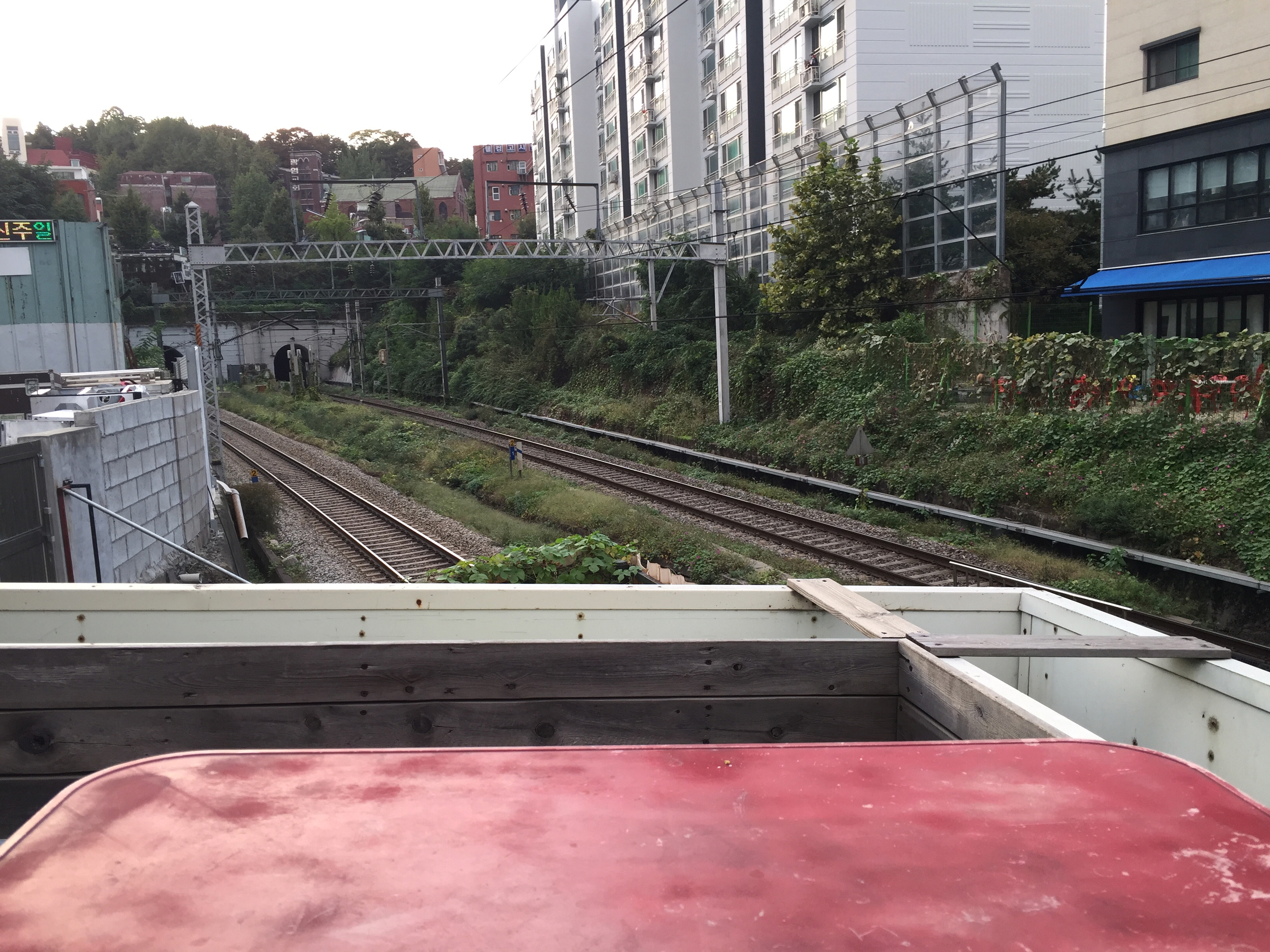 분식집 옆으로 지나가는 철길은 행신차량기지와 수색차량기지, 그리고 서울역을 잇는 경의선이라