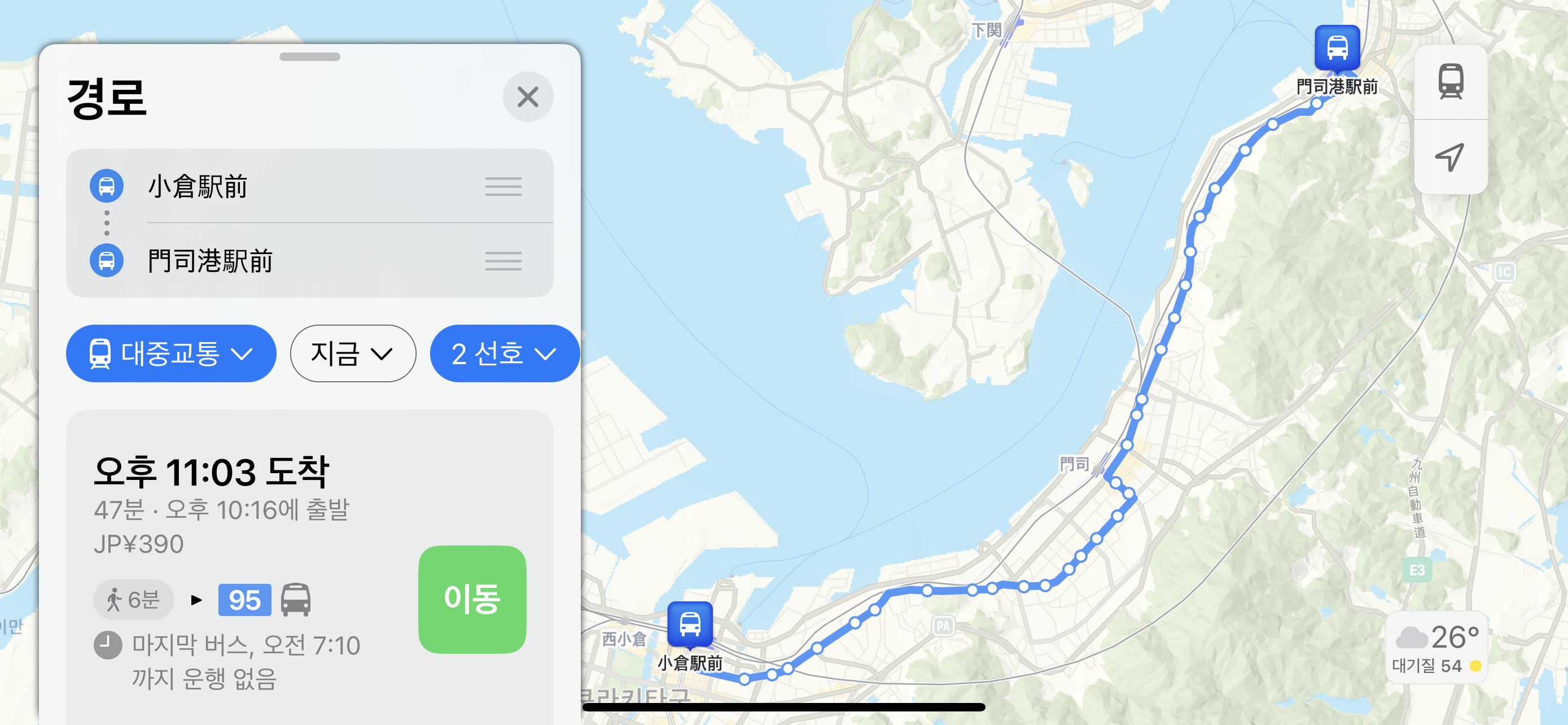 코쿠라에서 모지코로 이동할 때 쓸 수 있겠지만