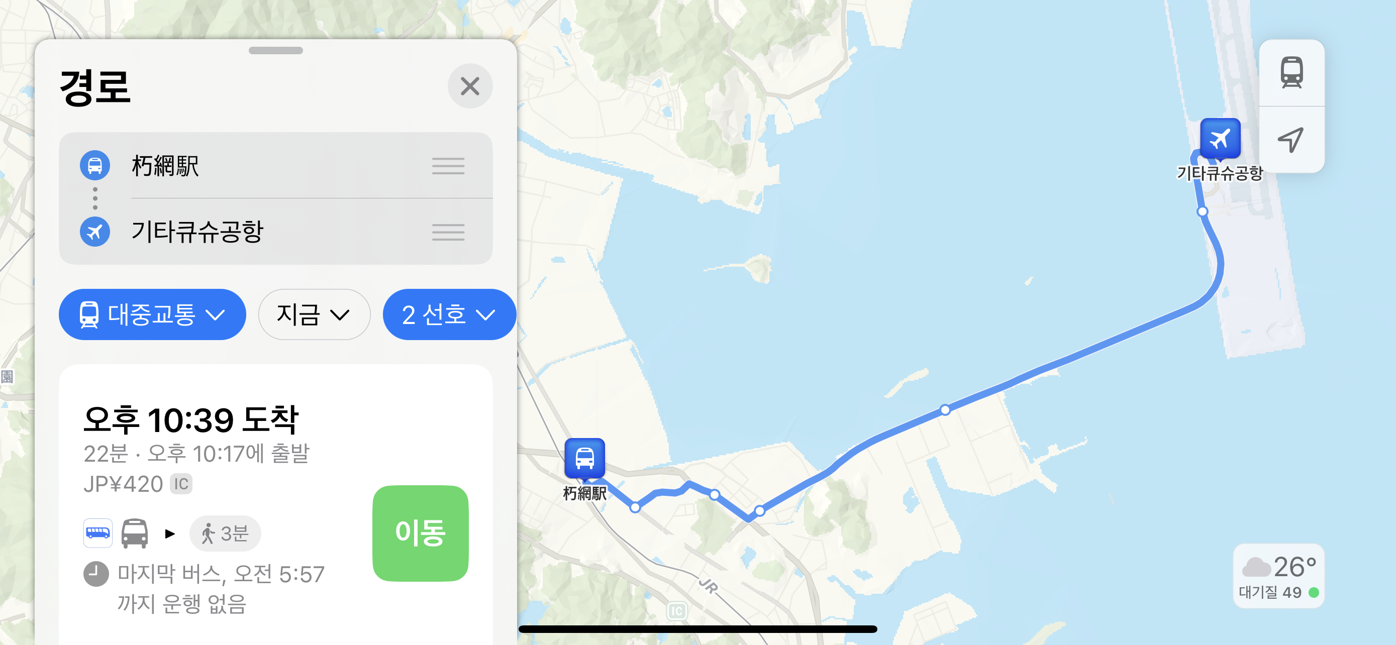 대신 쿠사미역에서 코쿠라역으로는 버스로 가는 방법이 없어