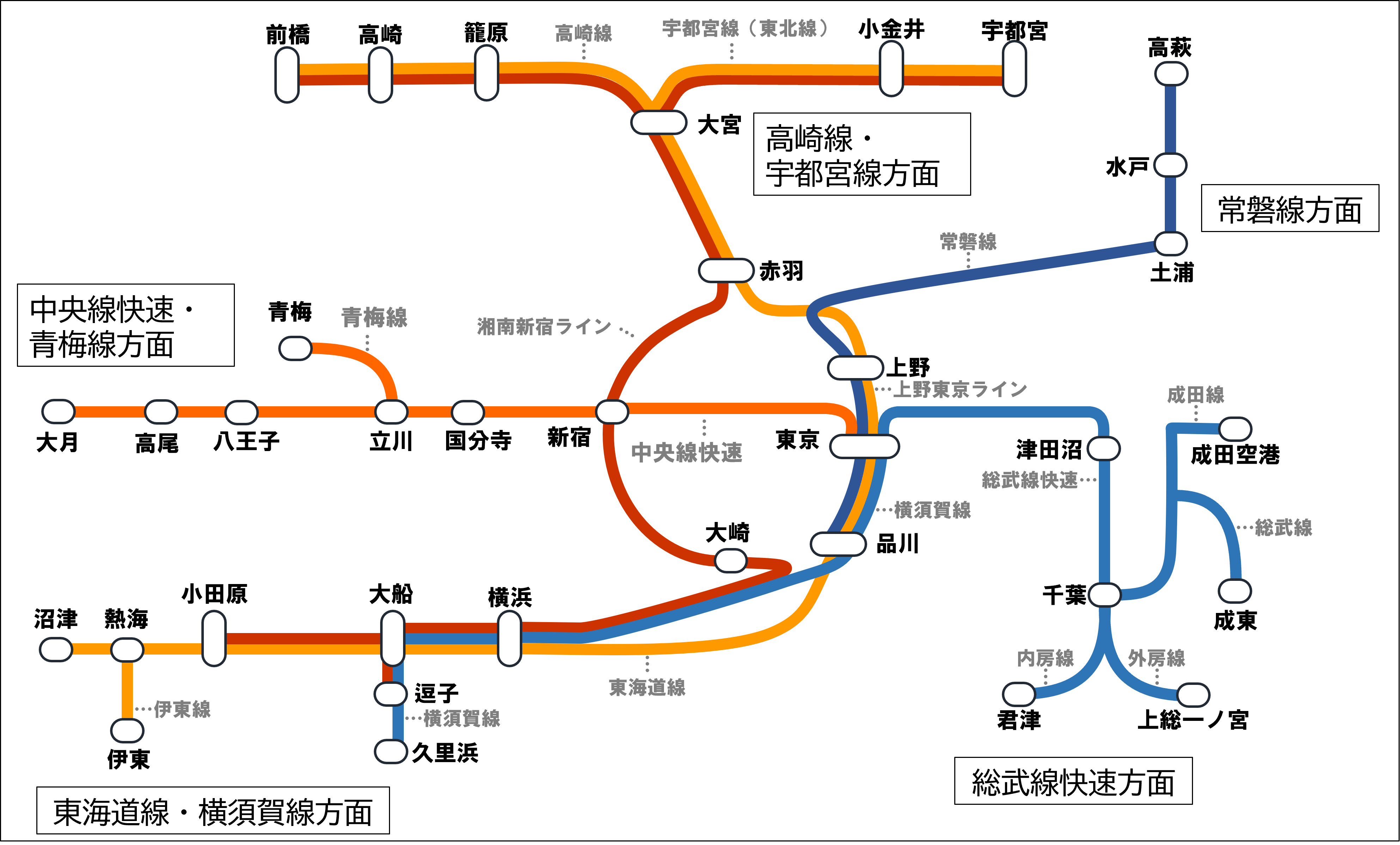 토카이도선, 우츠노미야선, 타카사키선, 쇼난신주쿠라인,