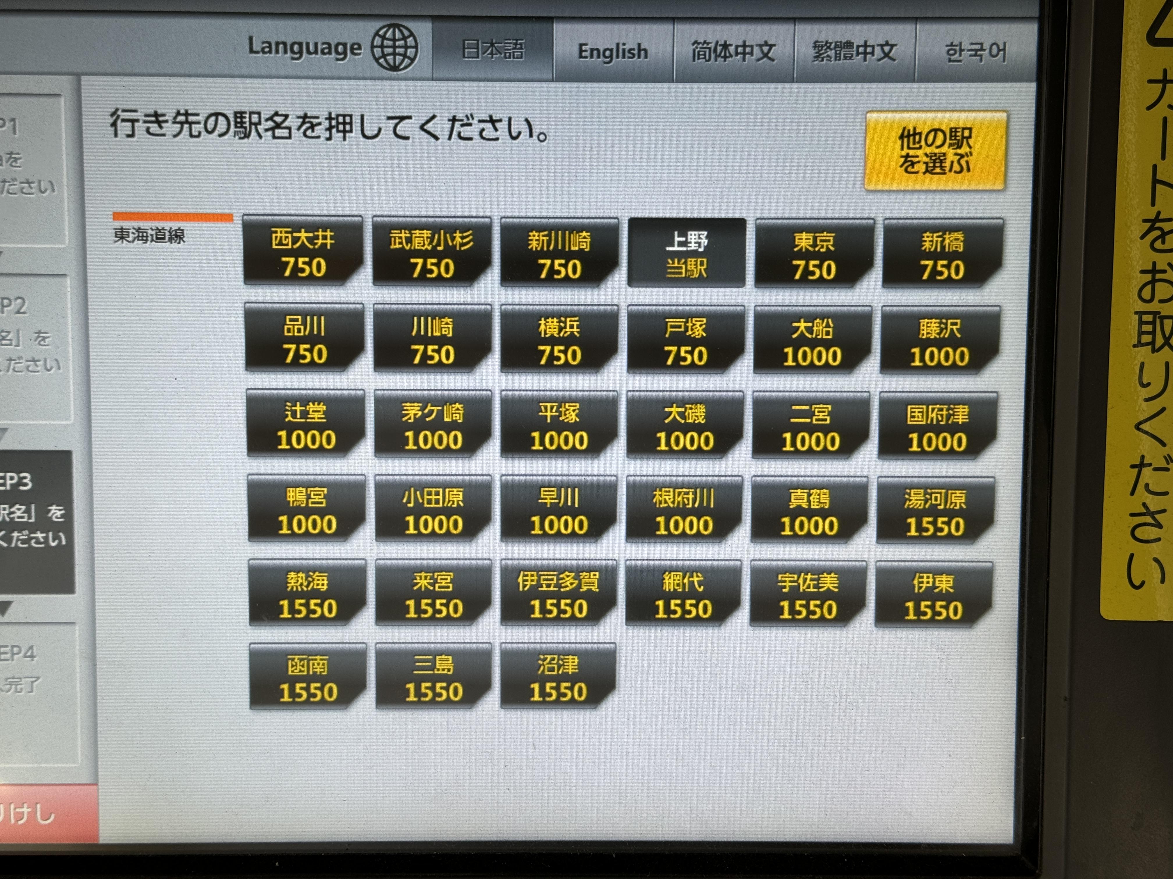 스이카 그린권 발매기에 칸나미역, 미시마역, 누마즈역 그린권 발매 메뉴가 생겼네요.