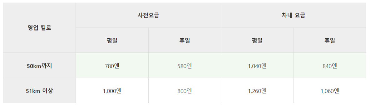 2024년에 그린샤 제도를 개편하면서 주중 주말 구분을 없앤 대신 거리를 세분화해