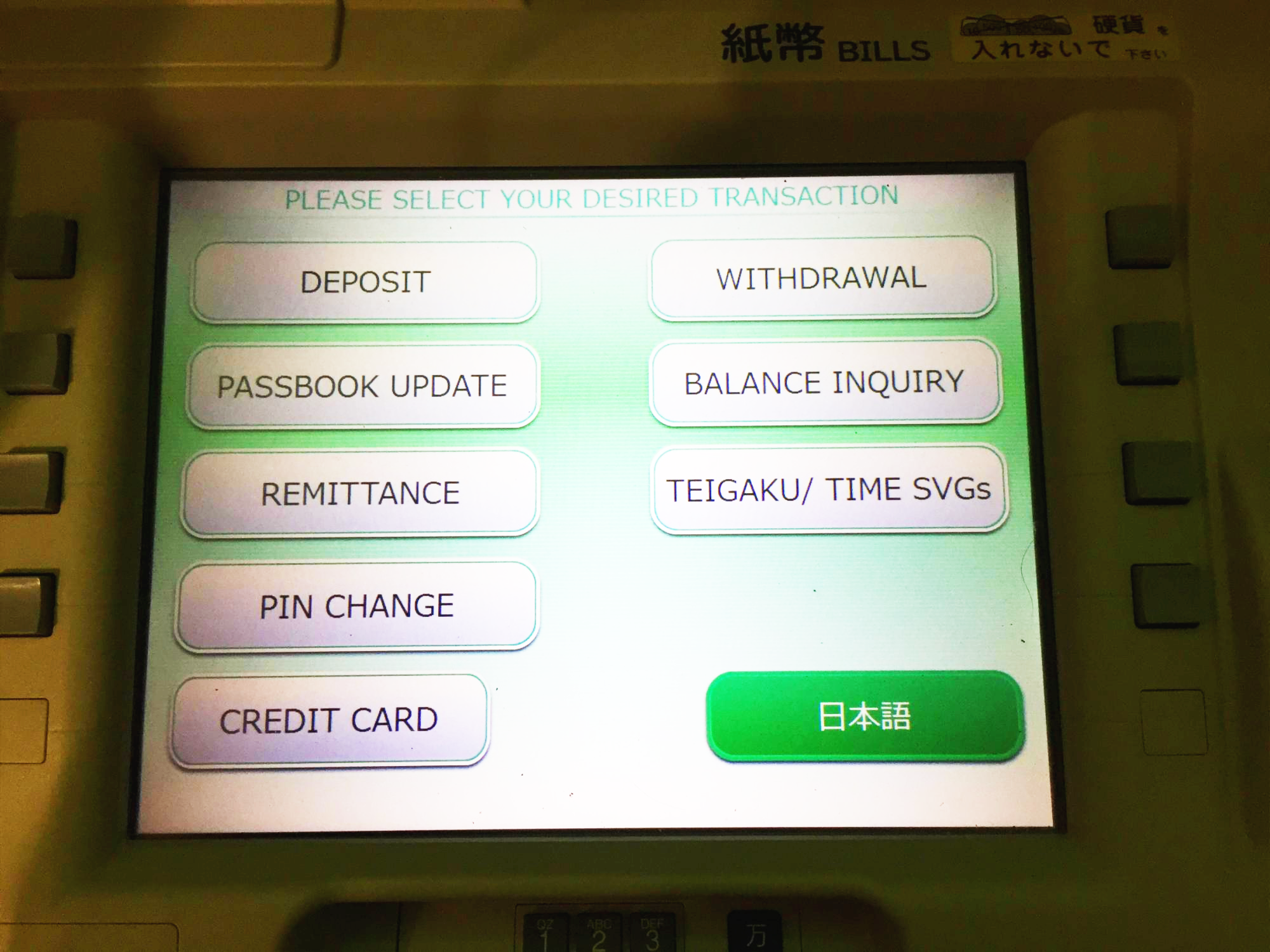 유쵸은행 ATM은 외국어로 영어만 지원하는 곳이 많으니