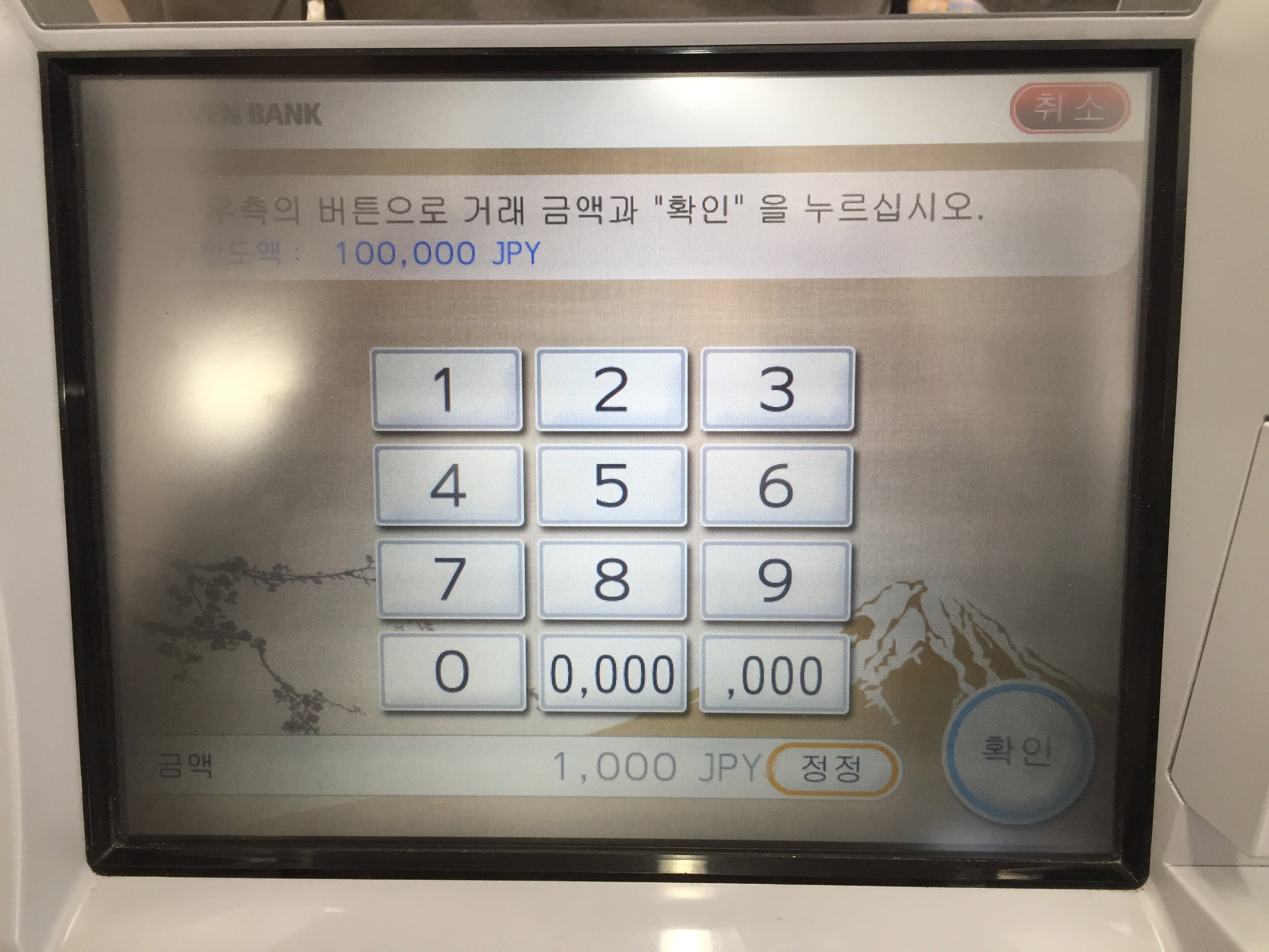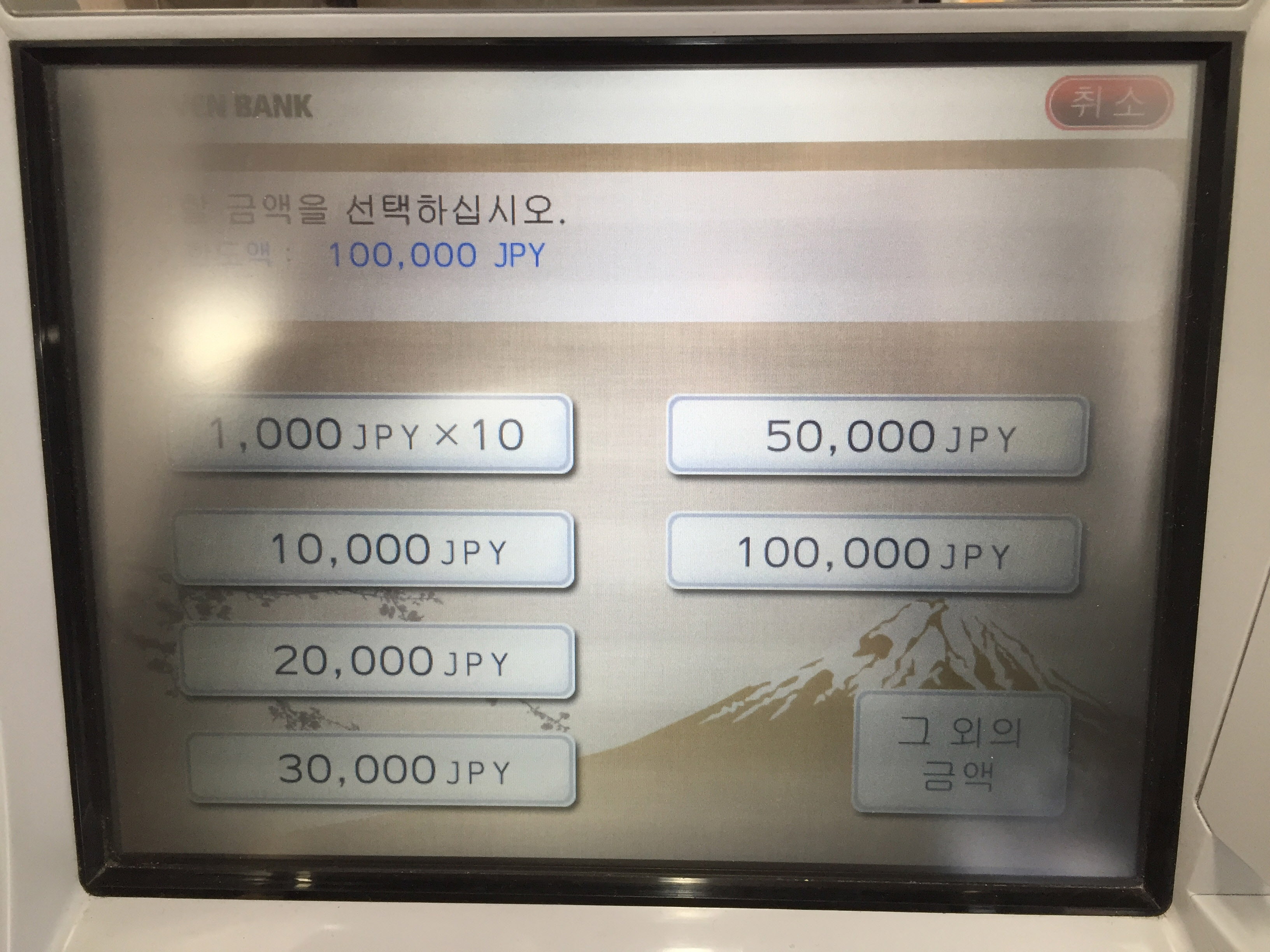 출금할 때 메뉴에 뜨는 금액이 1만엔부터 시작하는데