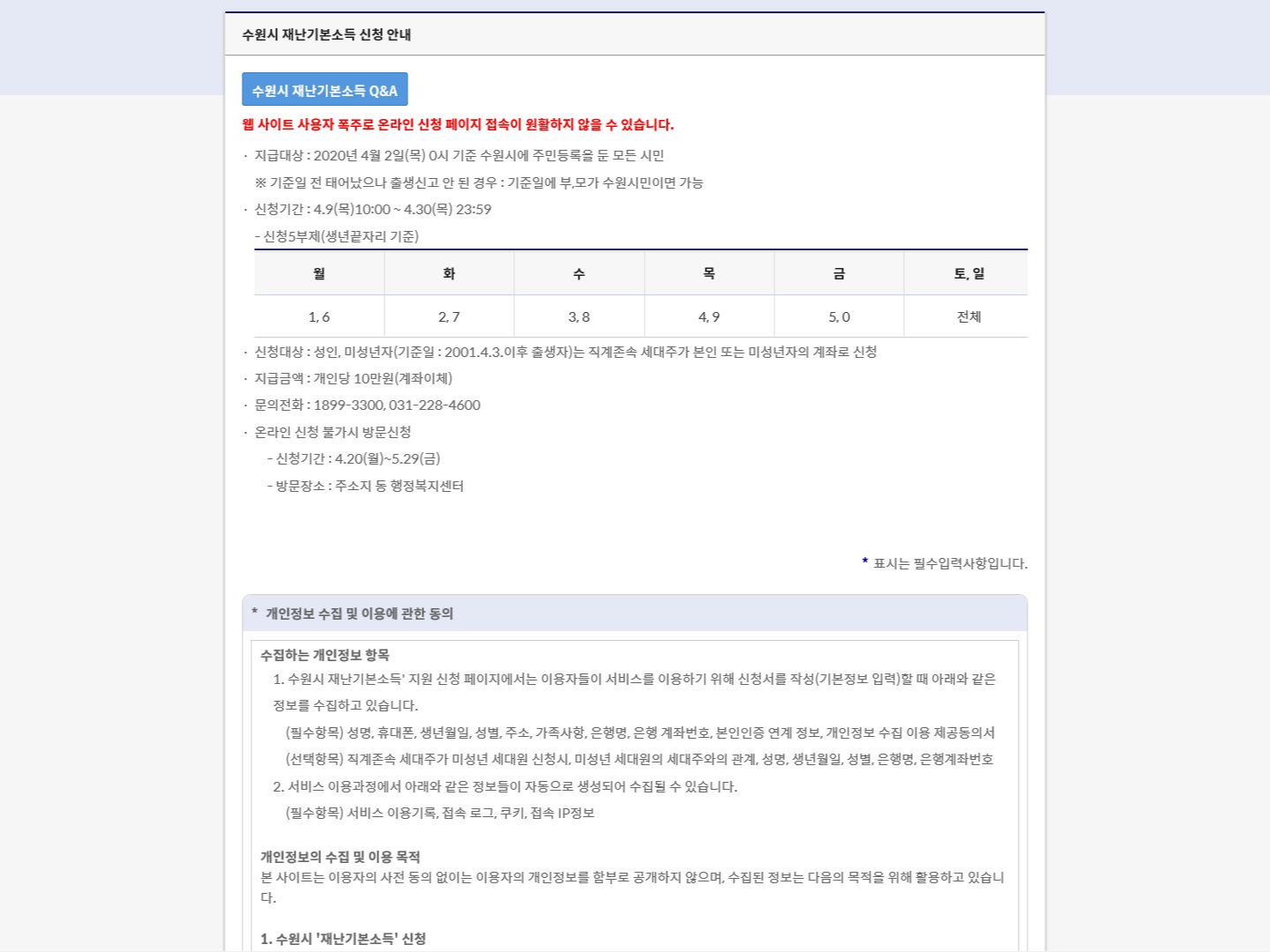 2020년 4월 9일 열린 재난기본소득 홈페이지에