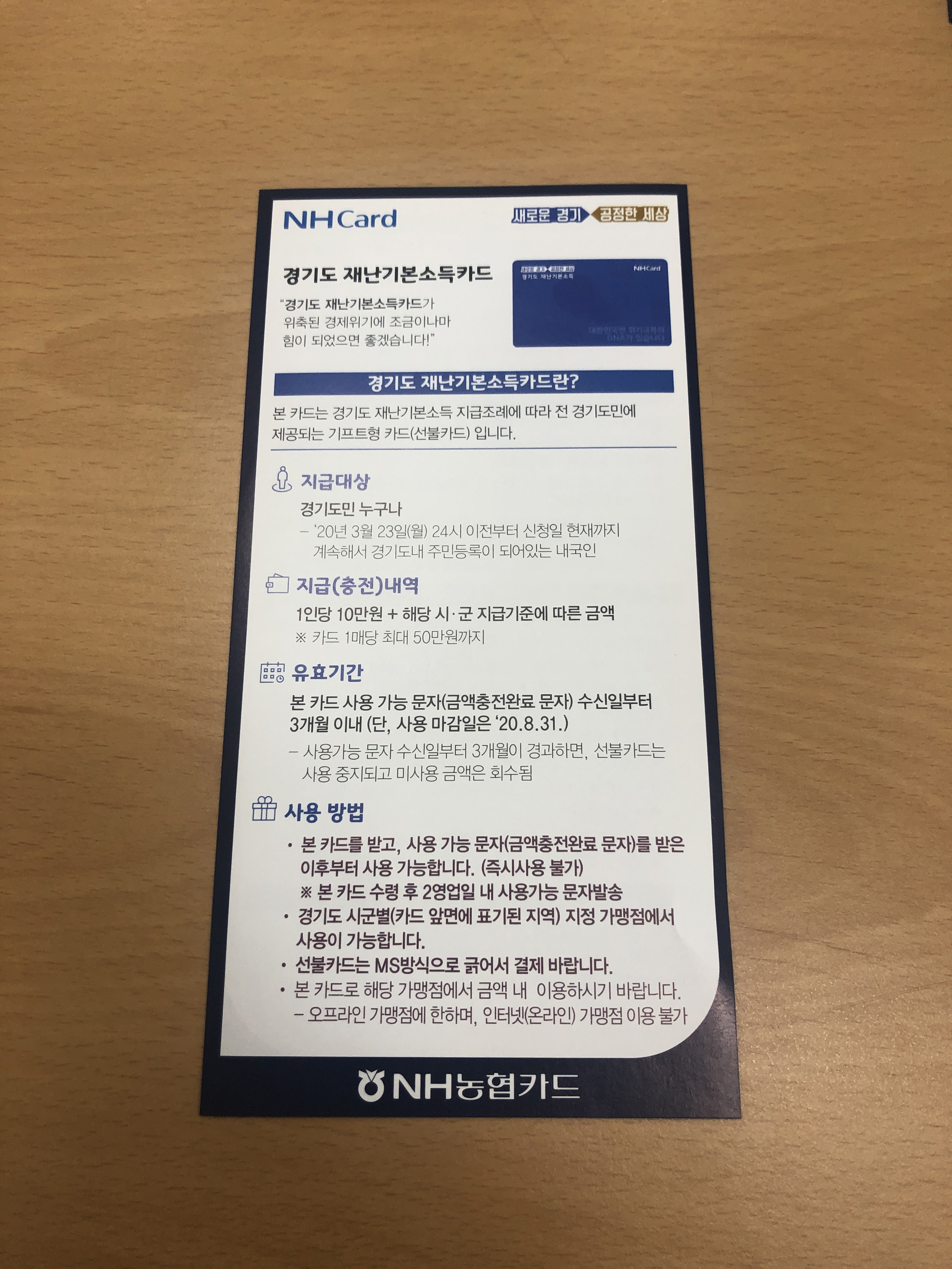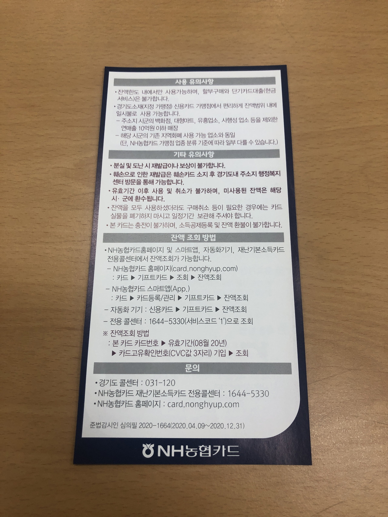 4월 20일부터 재난기본소득 10만 원이 담긴 농협 선불카드(기프트카드)를 신청할 수도 있습니다.