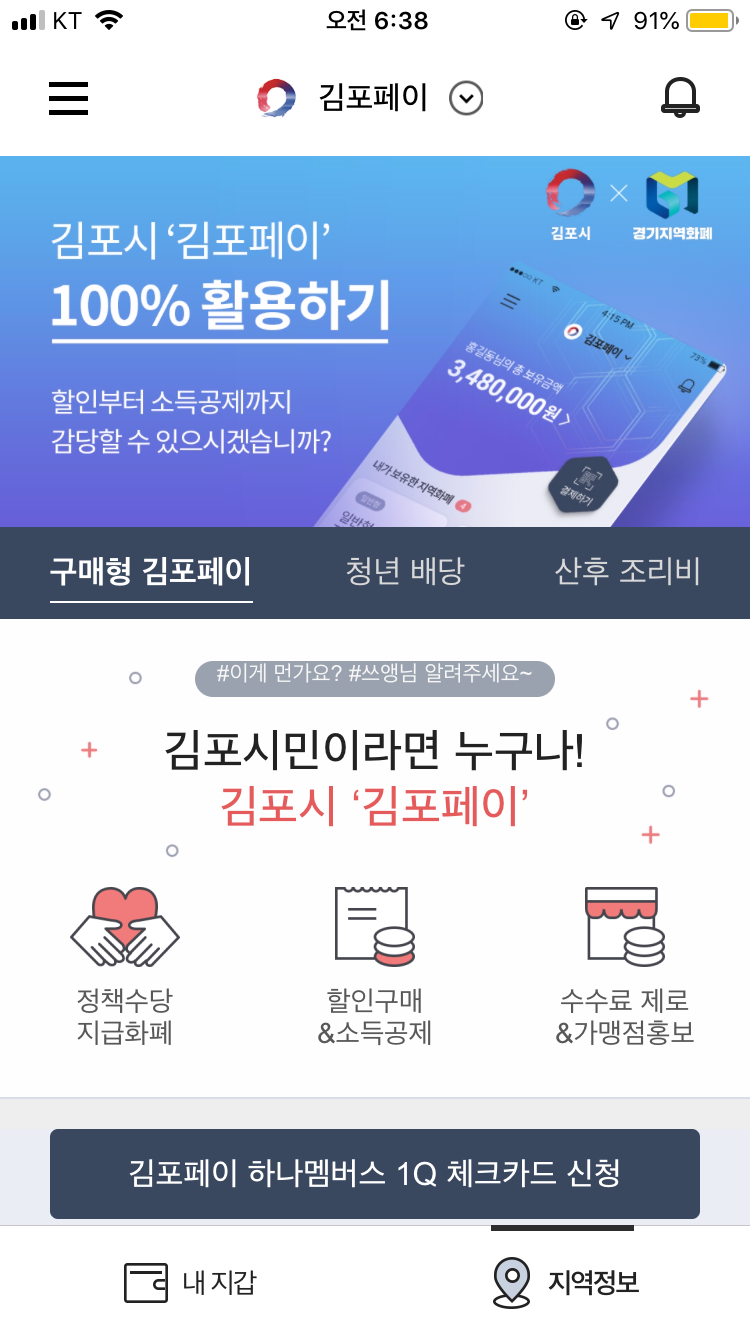 KT 착한페이 기반의 김포페이를 쓰는 김포시는 착한페이 앱을 받아서
