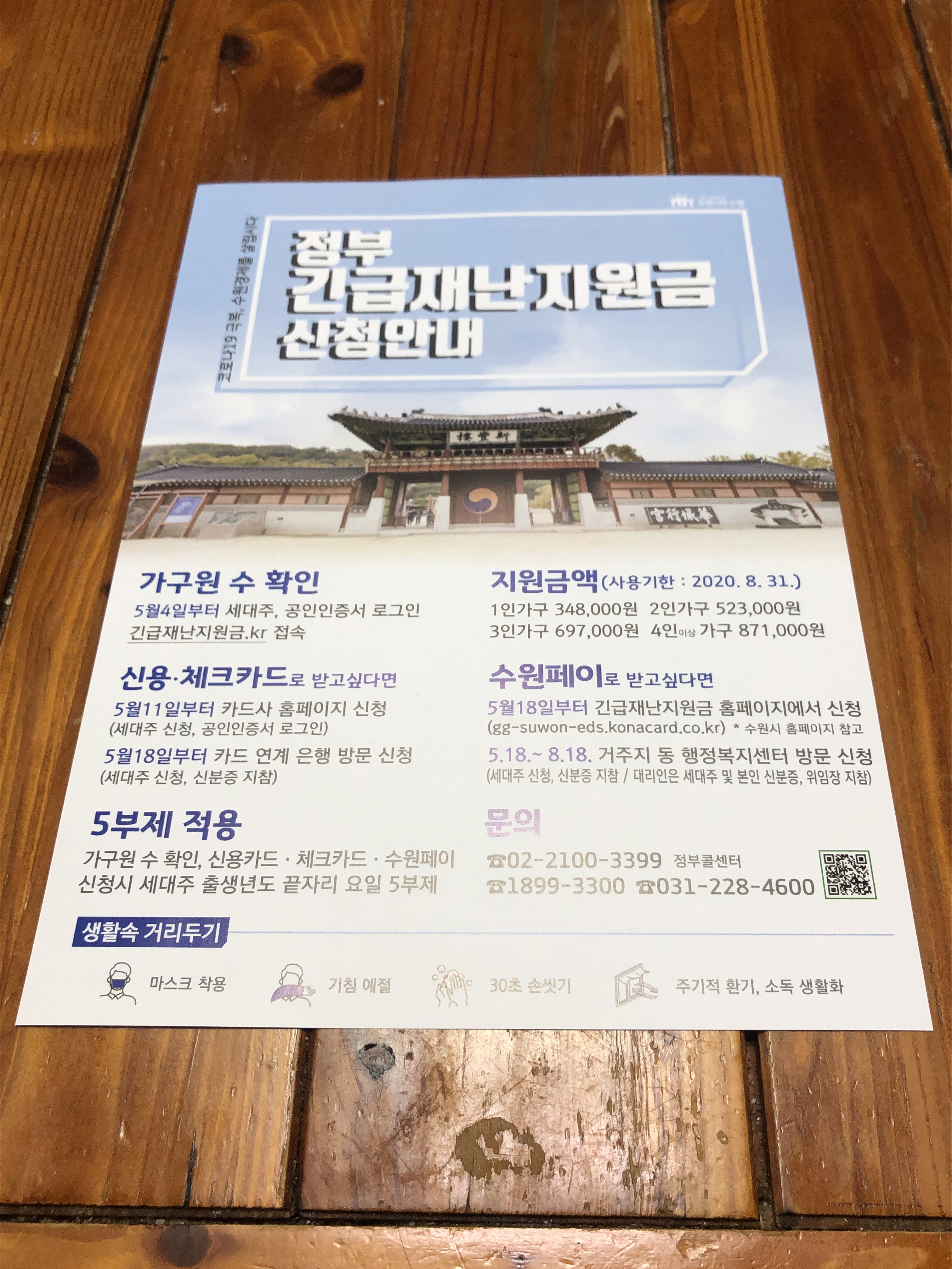 일단 제가 사는 수원시는 경기지역화폐로 주는 것이 아니라 현금, 온누리상품권으로 지급하네요.