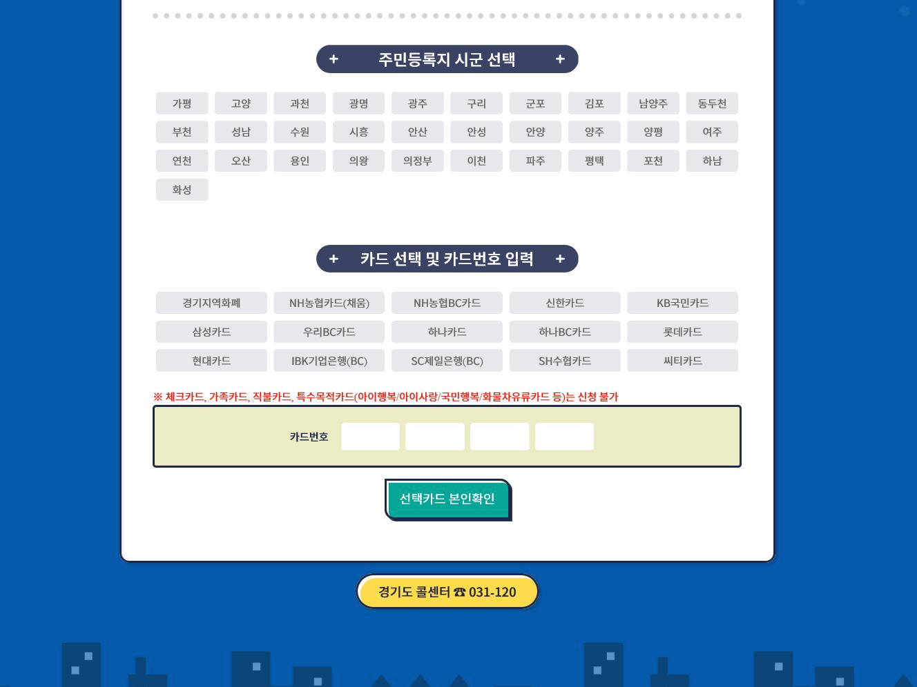 신용카드나 주민등록상 주소지에서 발급하는 경기지역화폐 카드번호를 등록한 뒤