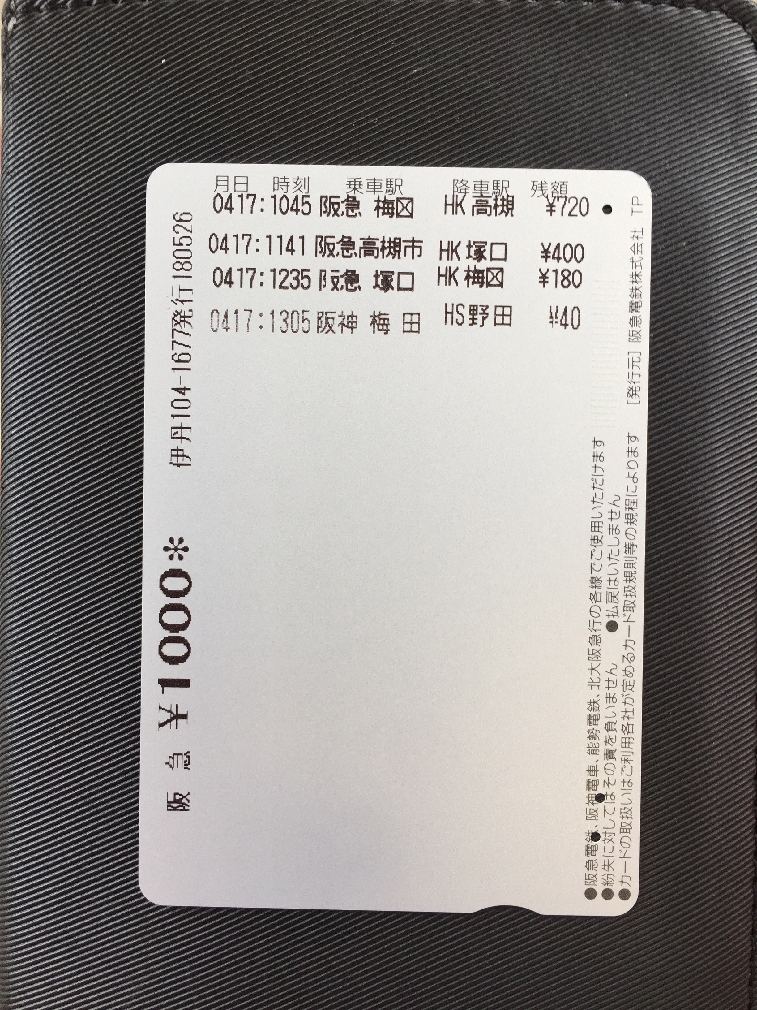 레일웨이카드 잔액은 다 썼으니 한신 전철을 탈 필요가 없네요.