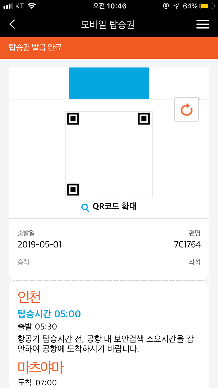 다시 보딩패스를 받고 비행기를 타러 갑니다.