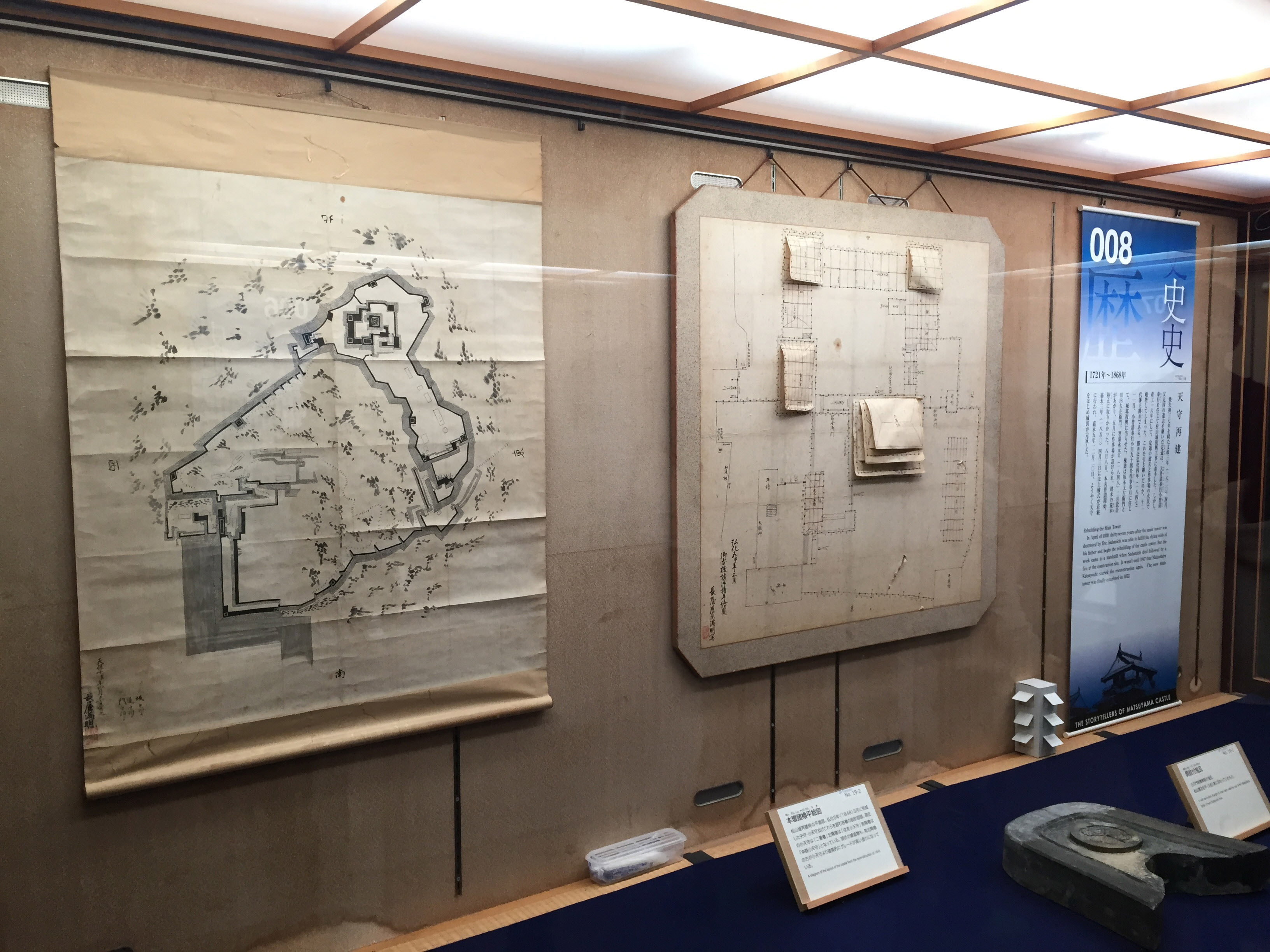 마츠야마성을 건축하면서 그린 도면 등도 놓여 있습니다.