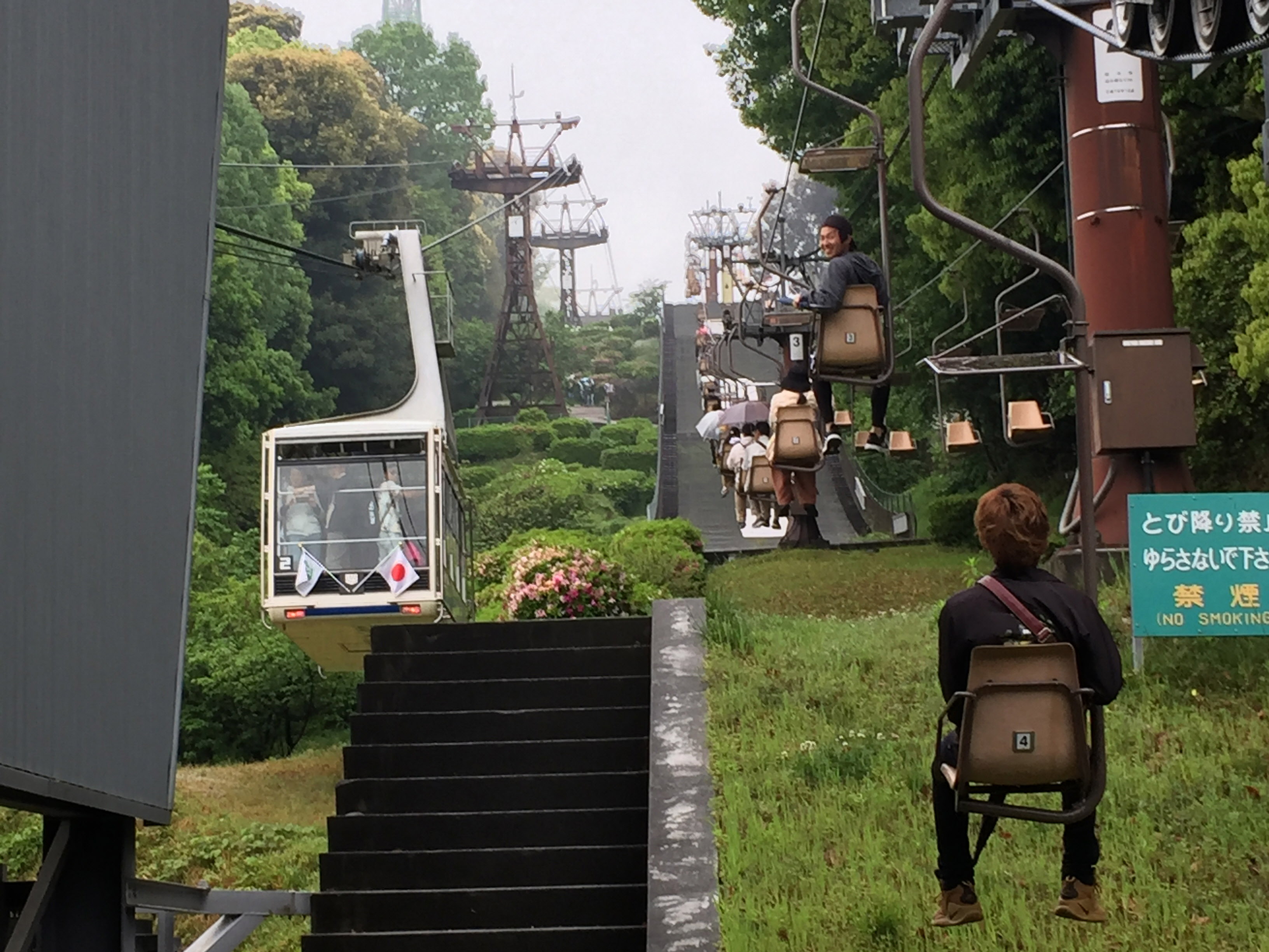 마침 리프트를 타는 때에 바로 옆에서 케이블카가 출발하네요.