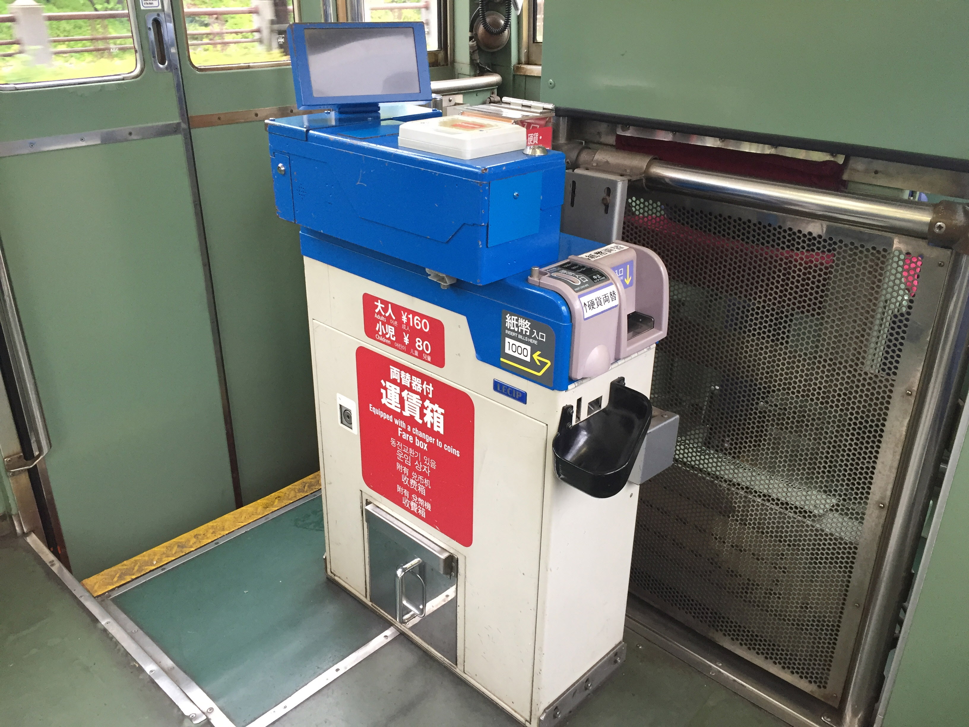 트램 요금은 거리에 상관없이 어른 160엔 어린이 80엔입니다.