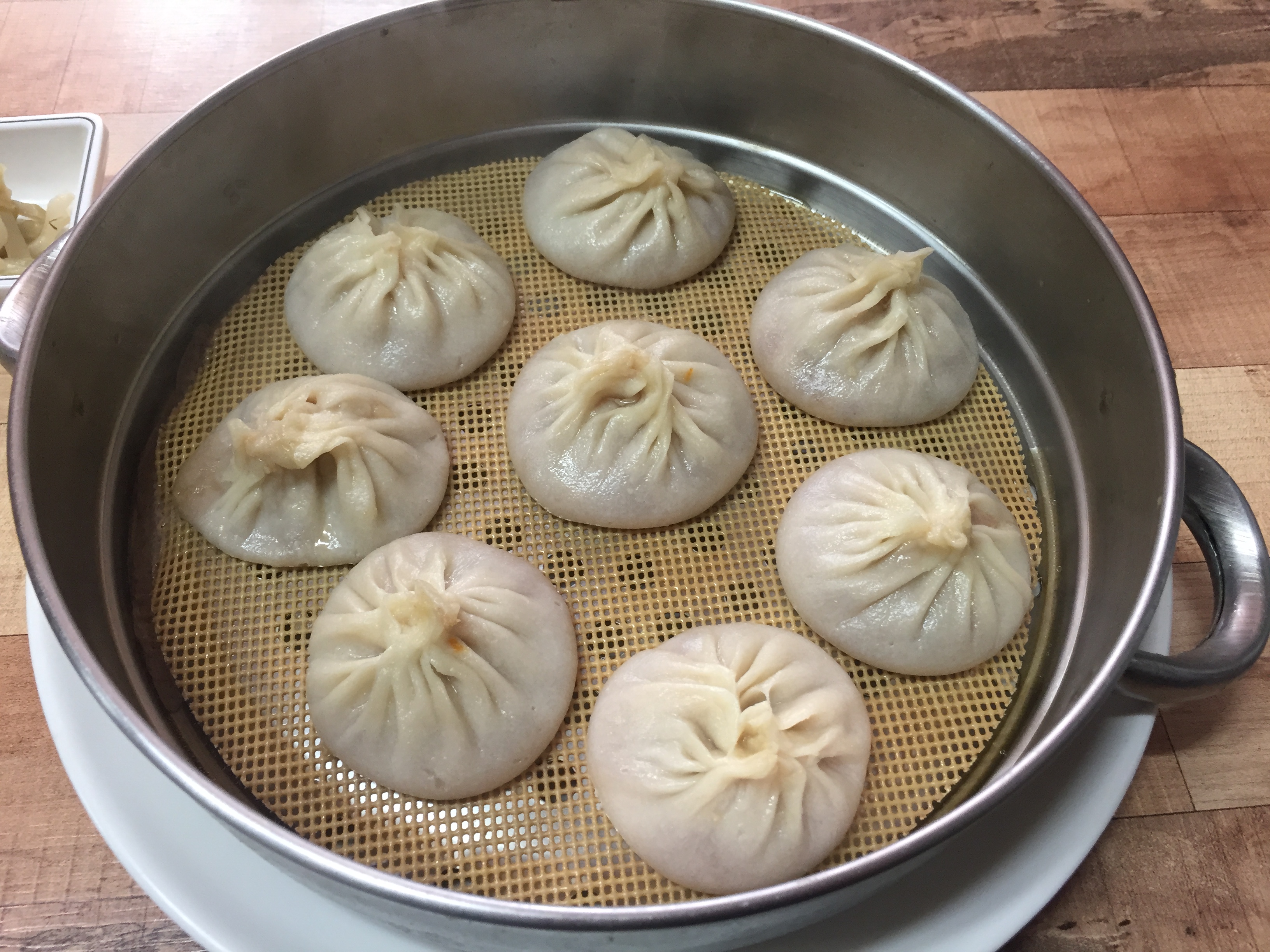 잠시 후 찜기에 담긴 고기육즙만두가 나왔습니다.