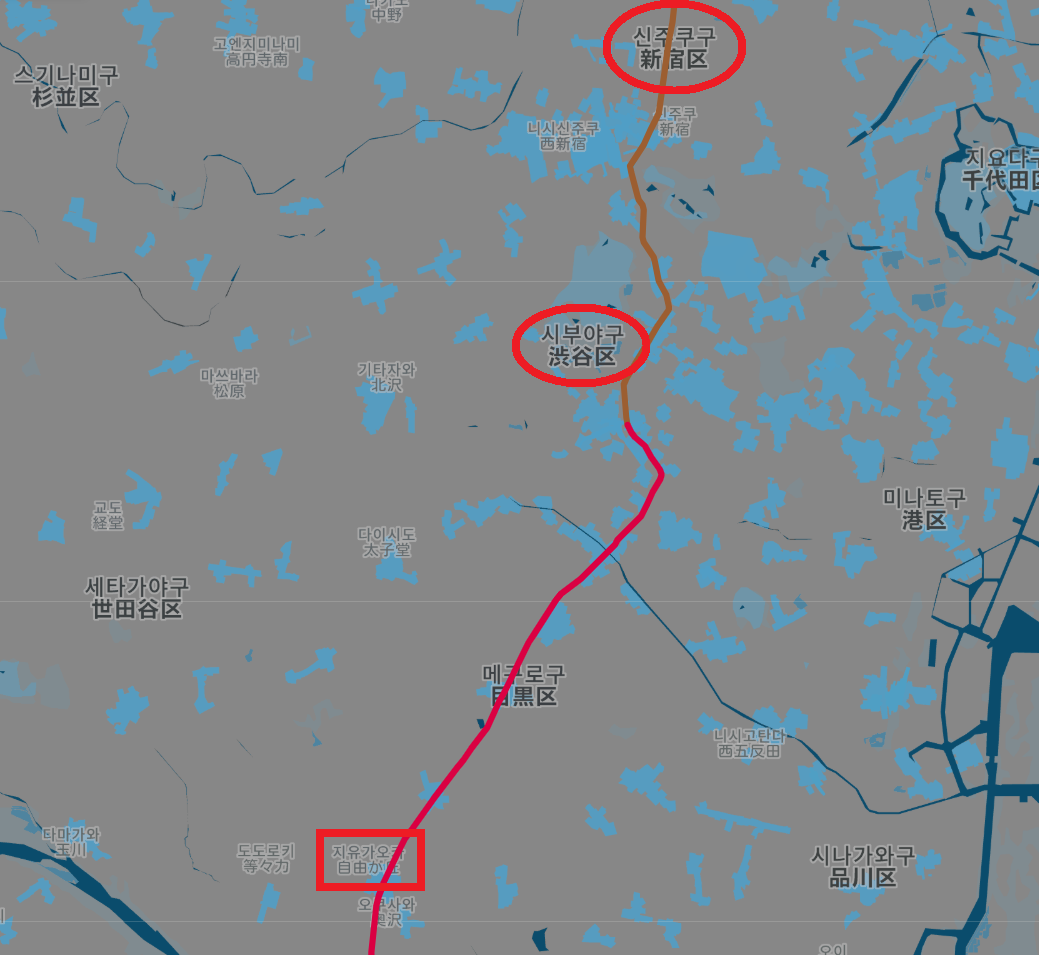 예를 들어 시부야나 신주쿠, 이케부쿠로에서 지유가오카로 간다면