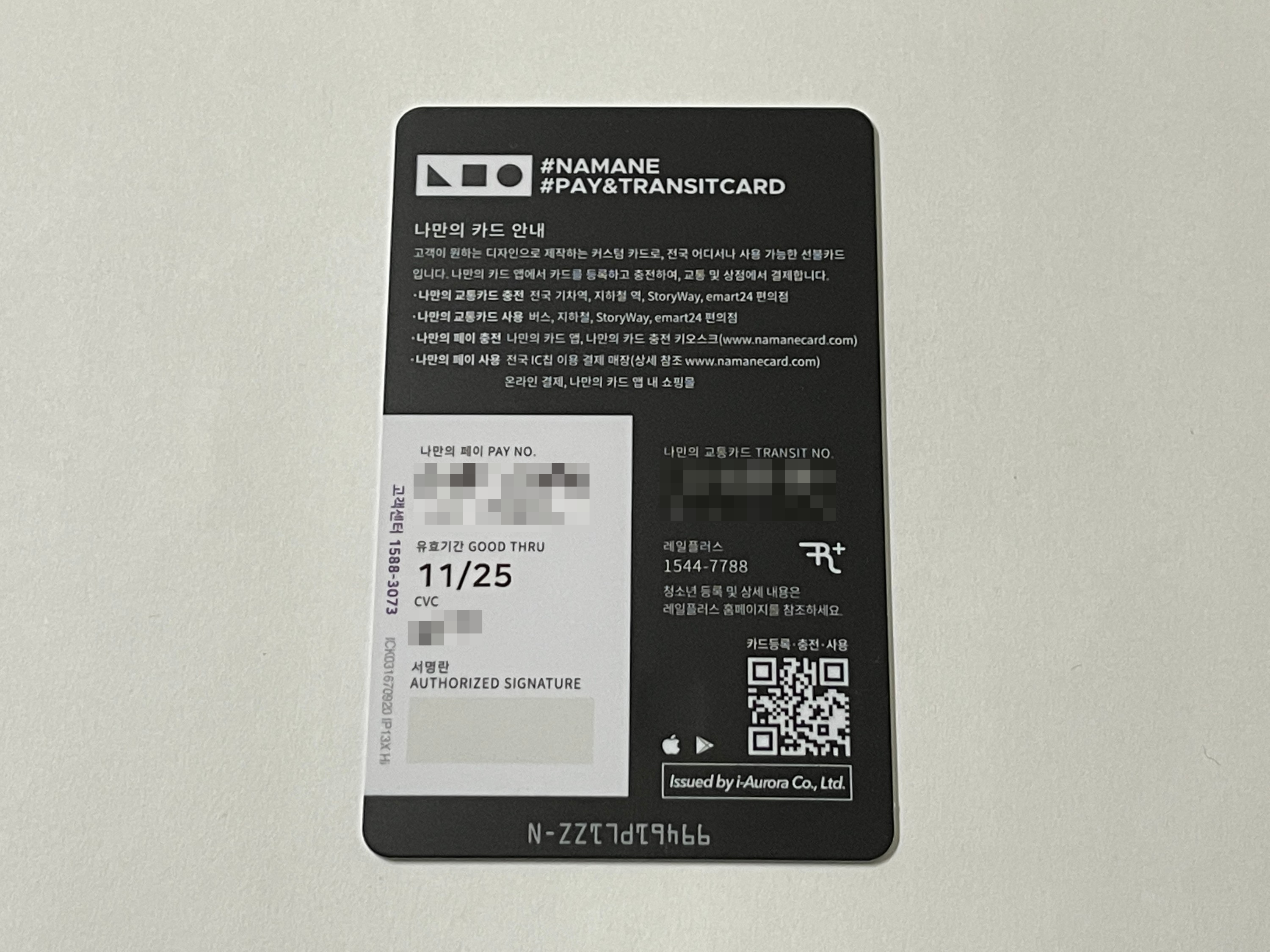 레일플러스 교통카드에 IC칩이 달린 선불카드 기능을 기본으로 탑재하고 있네요.