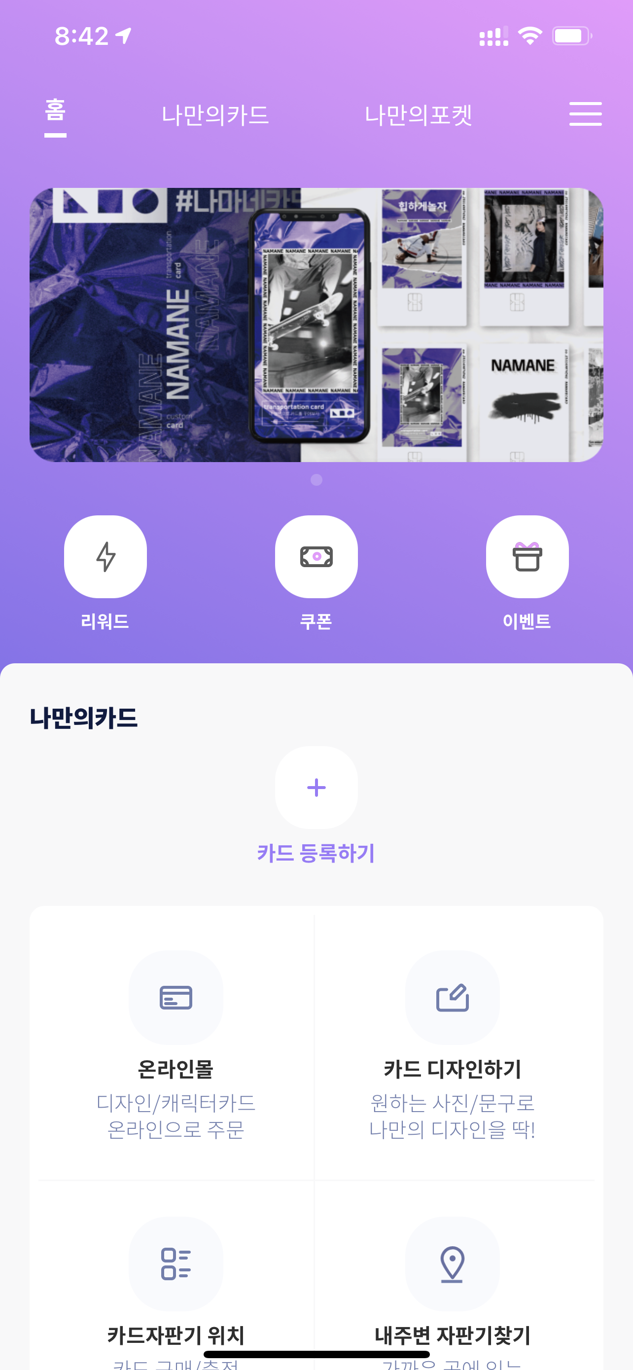 나만의 페이라는 이름을 붙인 선불카드 잔액은 앱을 통해 충전할 수 있습니다.