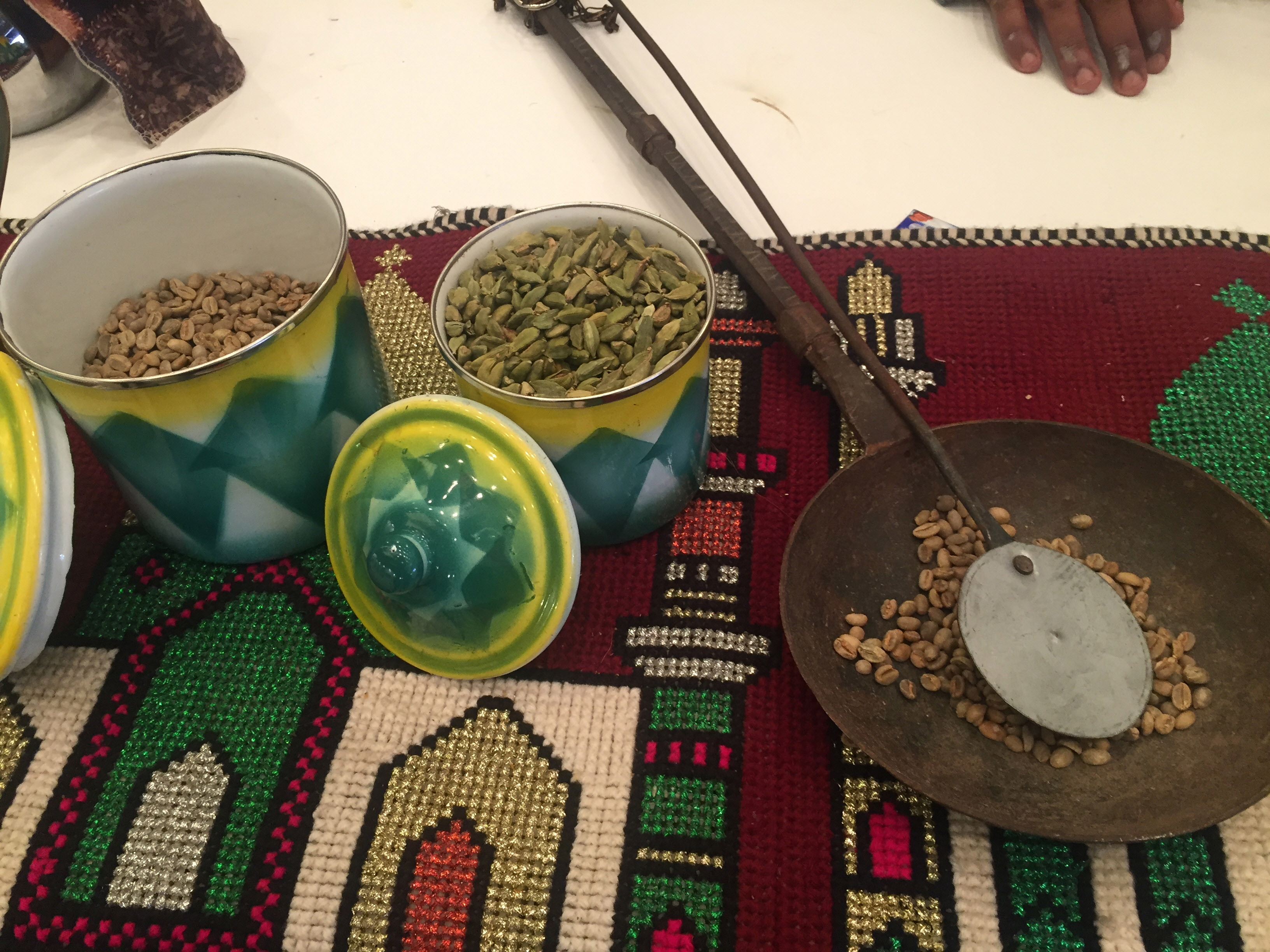 커피 시음 코너 근처에는 원두를 빻는 절구 알 호인(Al-Hawn)과