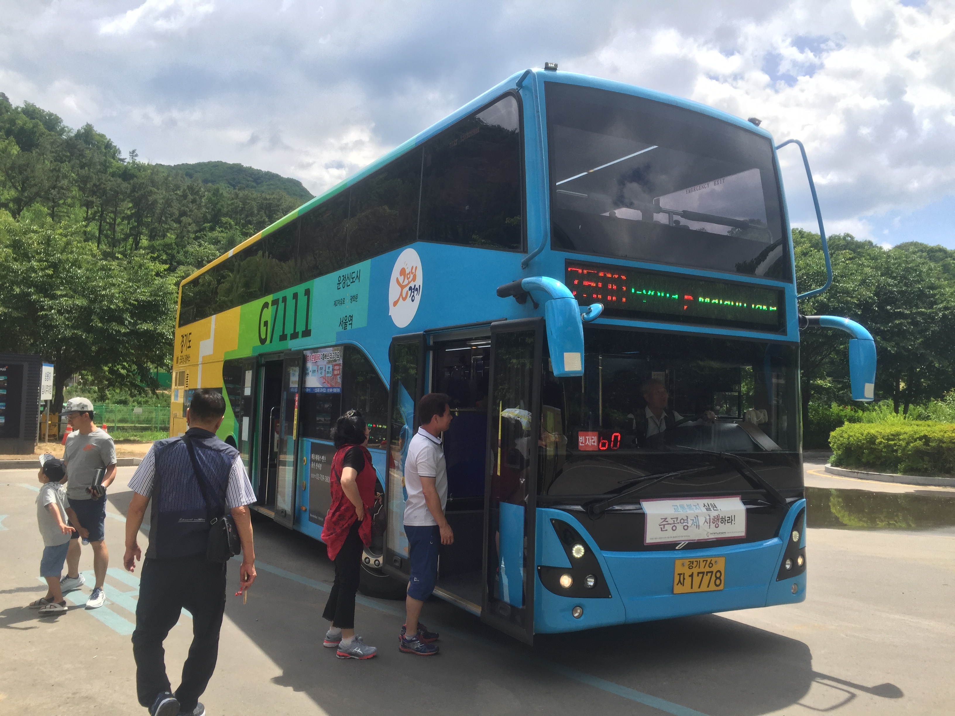 운정역에서 12시 20분에 출발하는 7500번 2층버스를 타고 1시간여를 달려