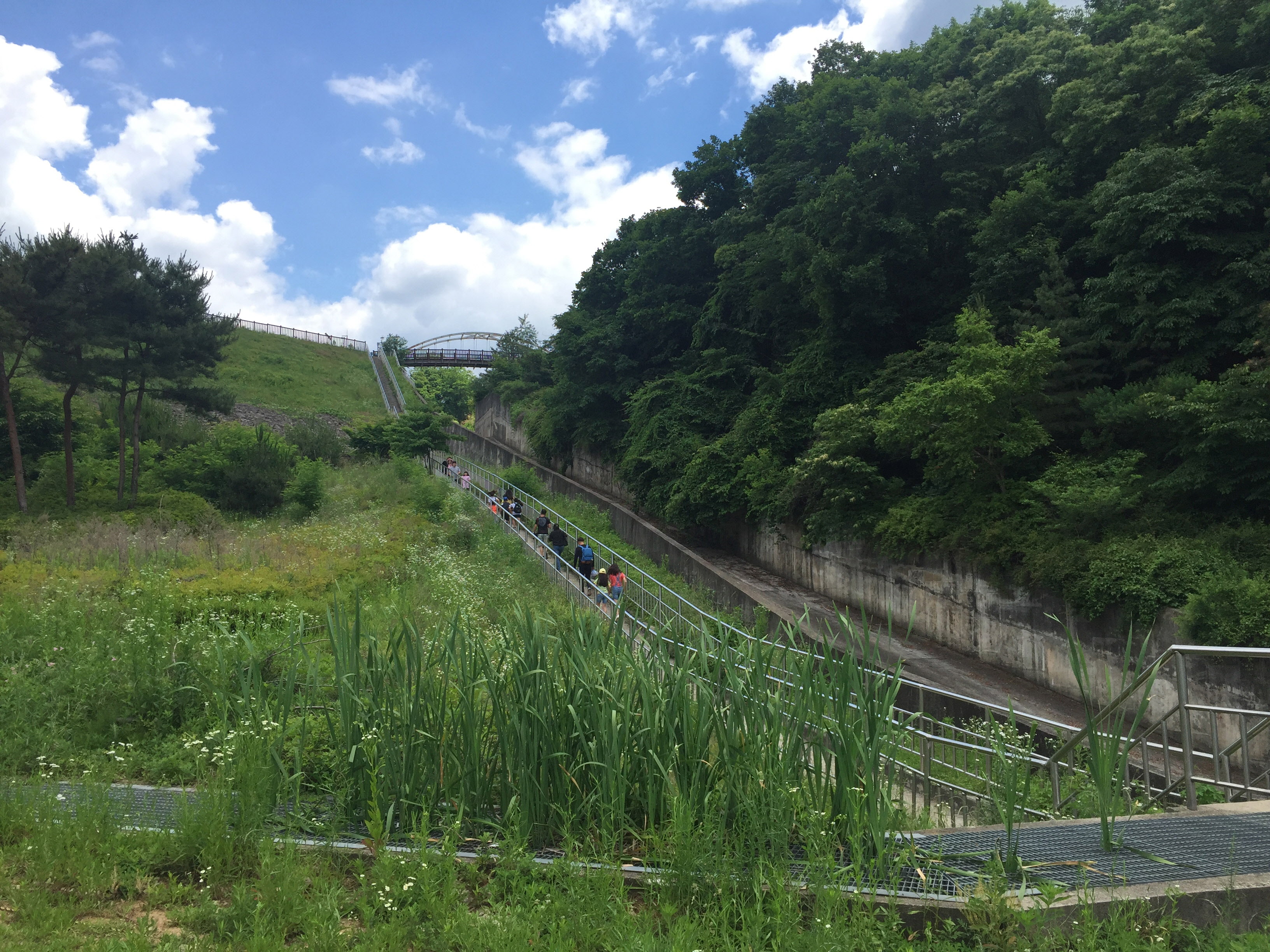 버스 정류장에서 계단을 따라 올라가니