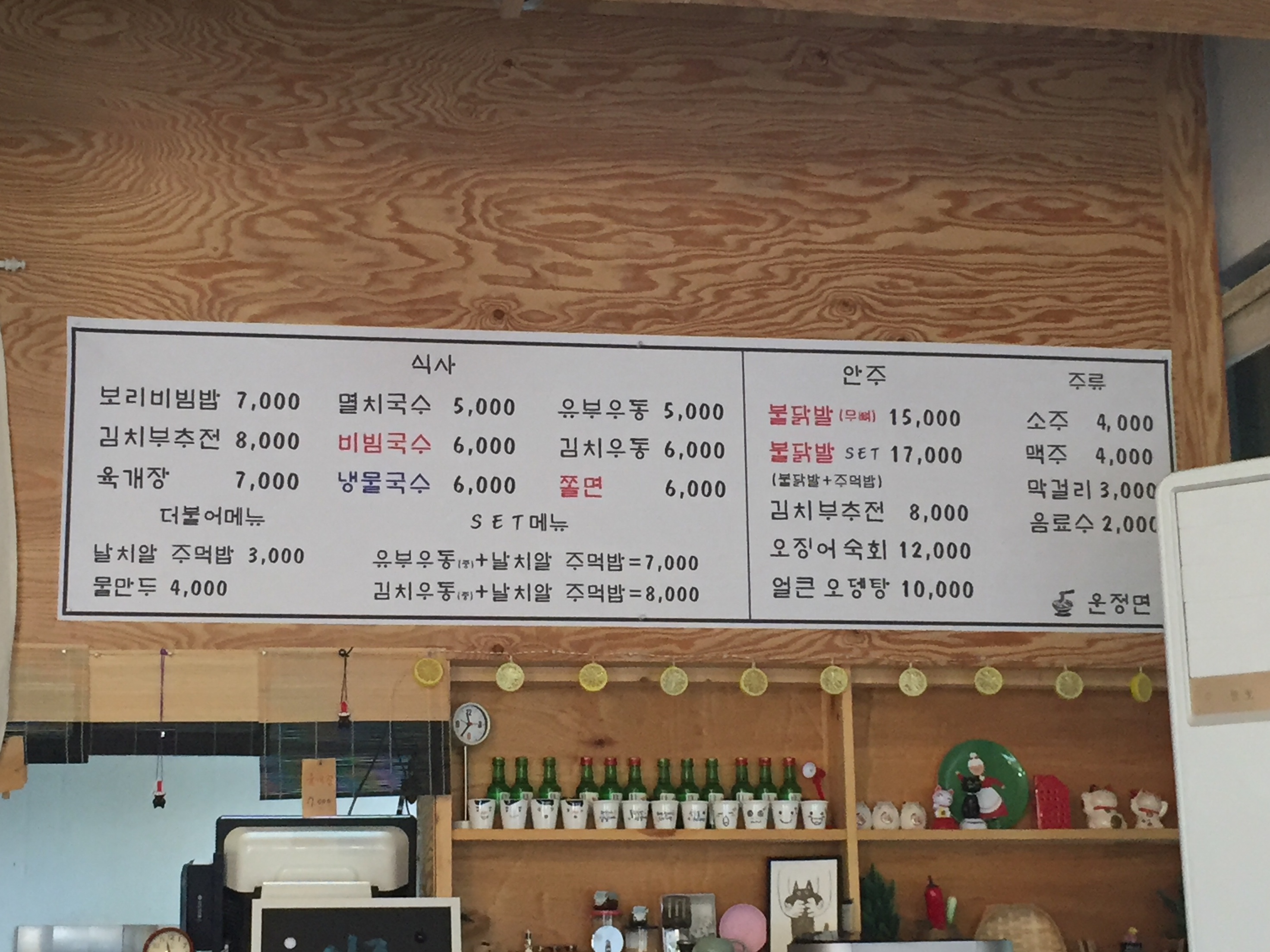 운정면이라는 국수집에 들어가 멸치국수를 주문.