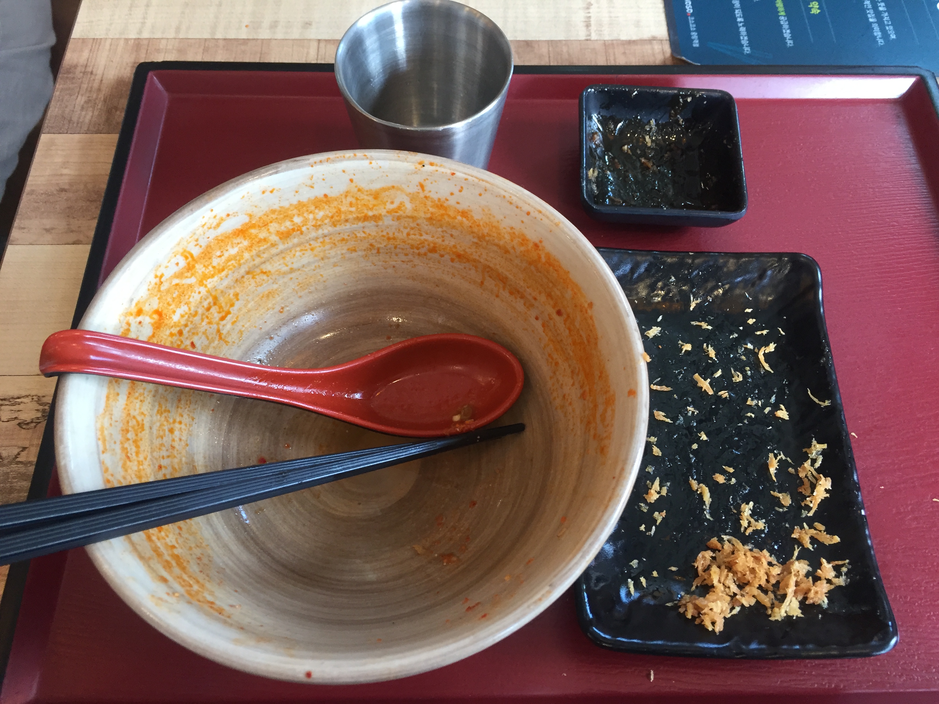 조금 맵다 싶으면 옆에 있는 돈가스에 소스를 찍어 먹어 혀를 달래며