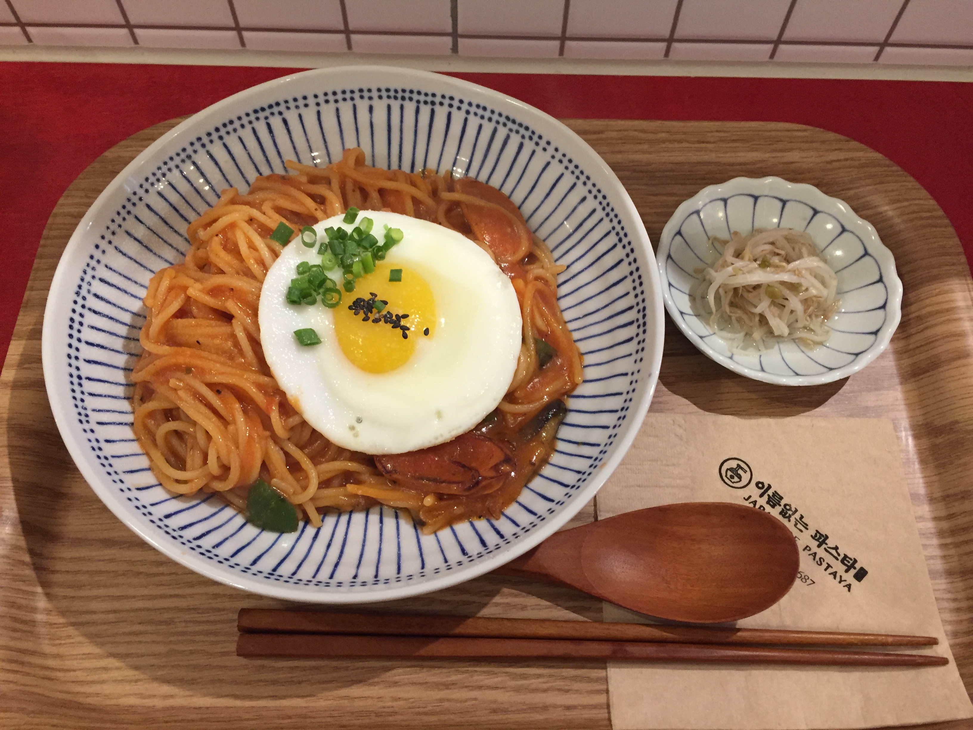 잠시 기다리니 계란 프라이를 얹은 나폴리탄이 나왔습니다.