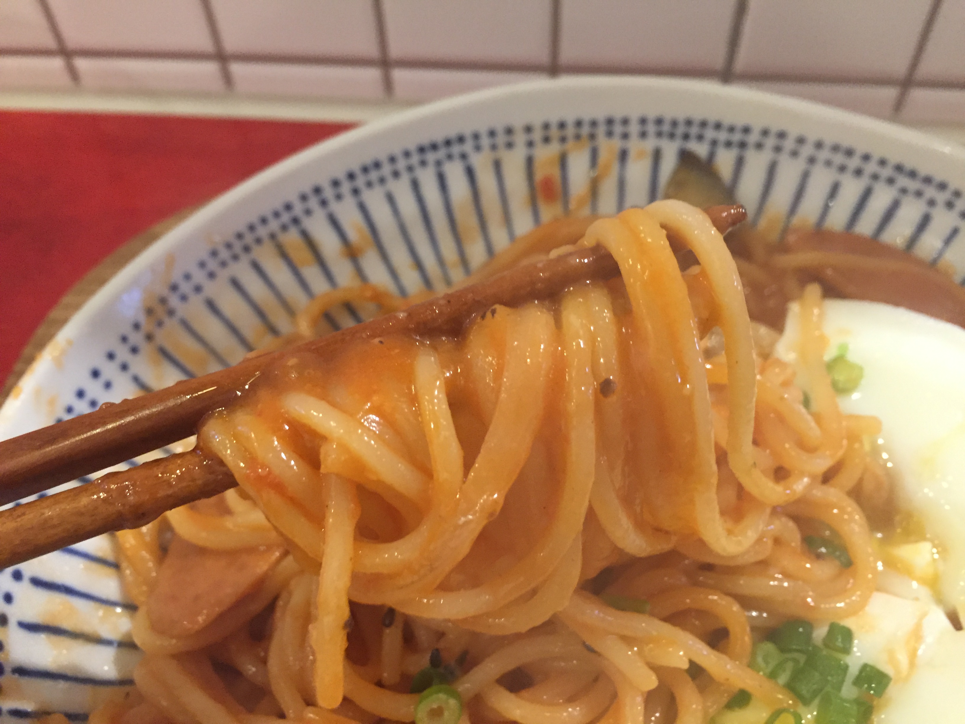 스파게티에 쓰는 소스마저도 토마토소스가 아닌 케첩이니 상당히 변형이 많이 된 요리죠.