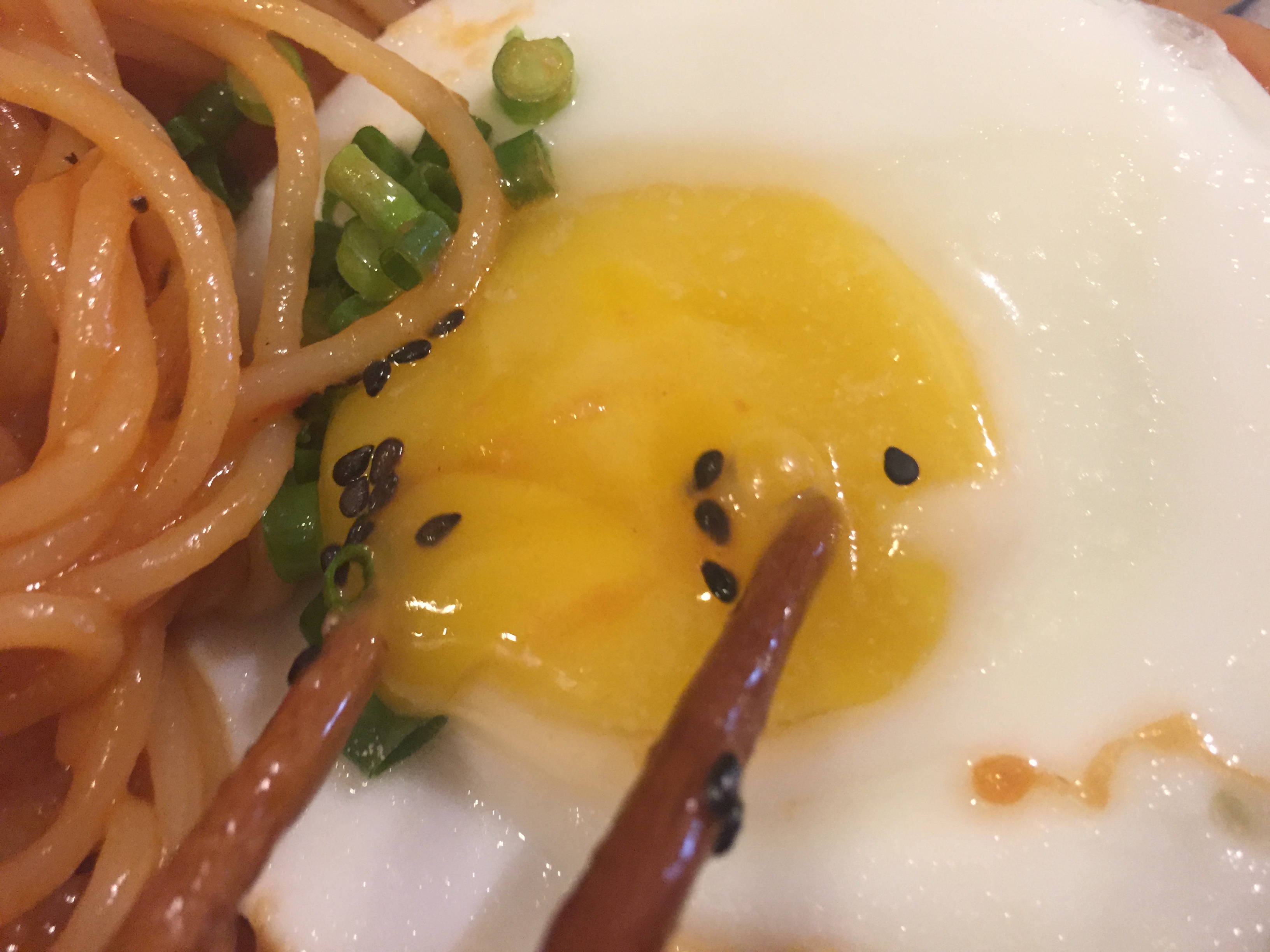 계란을 젓가락으로 사정없이 찢은 뒤 적당히 비벼 먹었습니다.