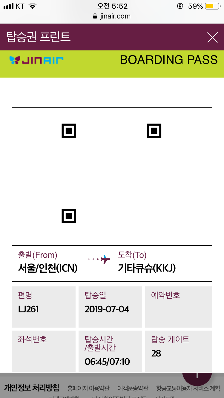 오랜만에 키타큐슈행 진에어 비행기를 예약했습니다.