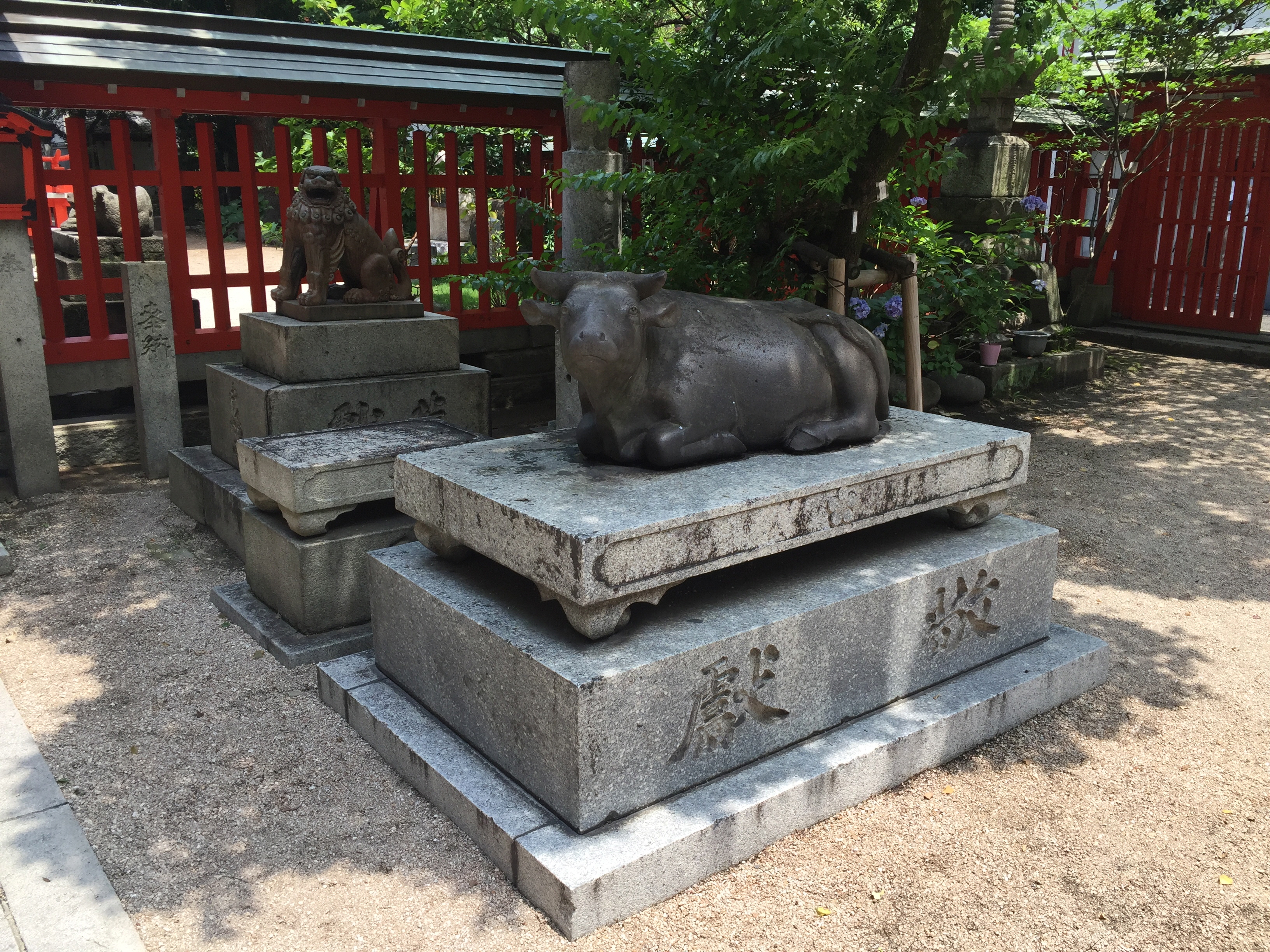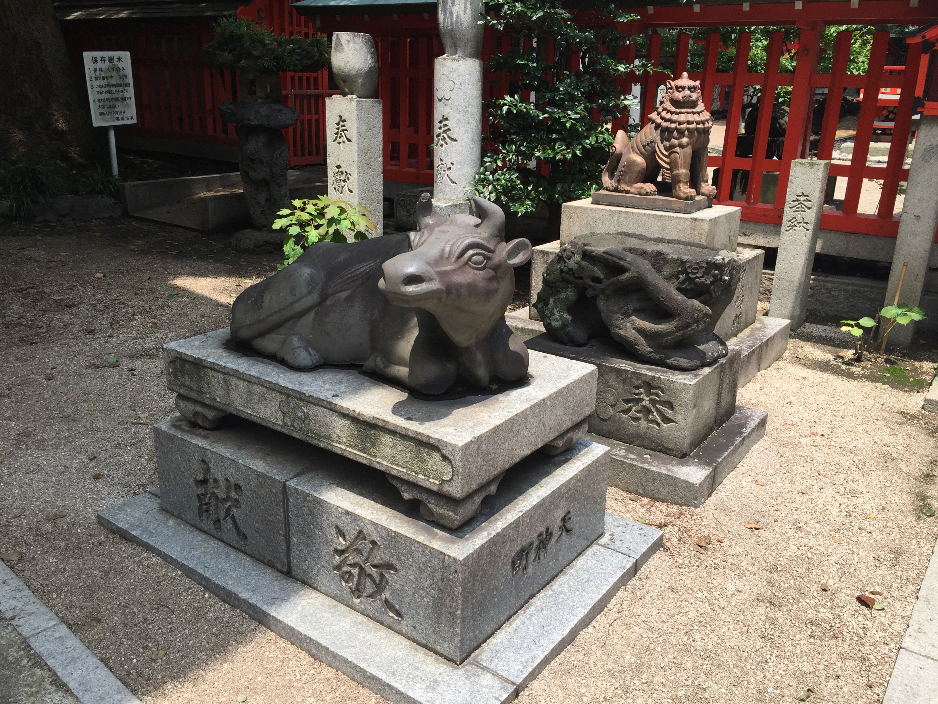 그래서 다자이후 텐만구처럼 이곳에도 소 동상이 놓여 있죠.