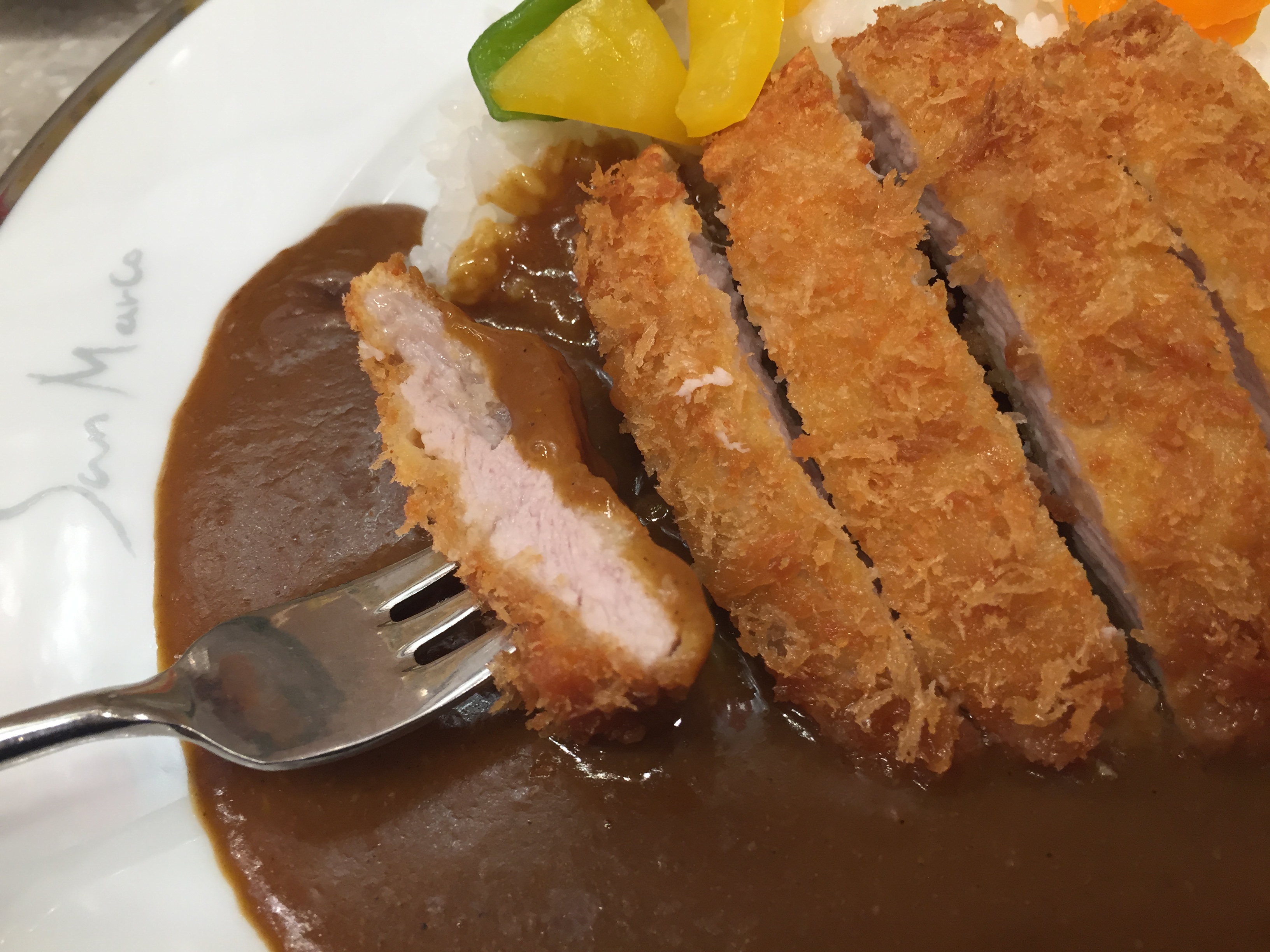 맛은 전형적인 일본식 카레와 전형적인 일본식 돈가스의 맛입니다.