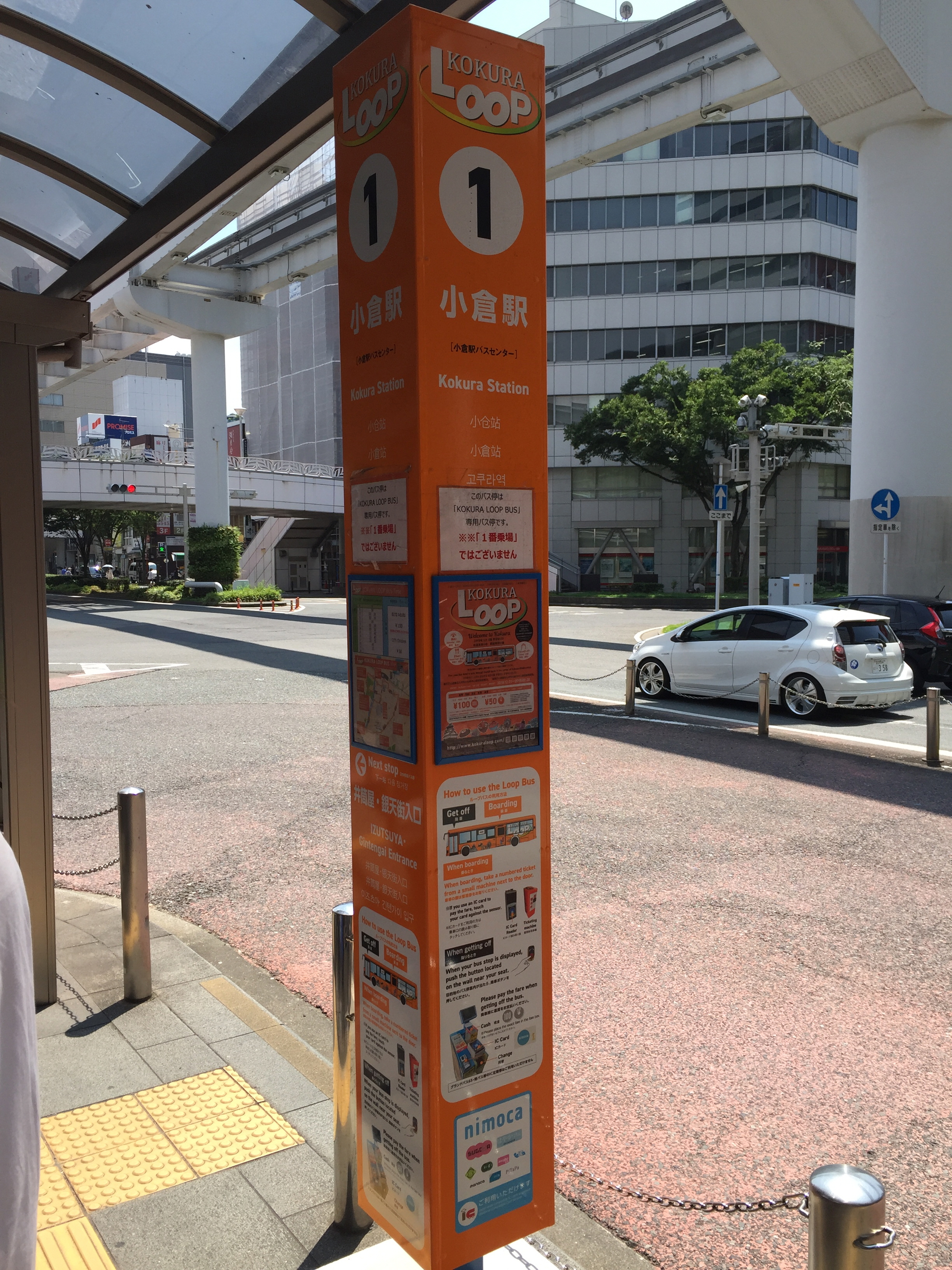 코쿠라역 버스센터 정류장이 코쿠라 루프 버스 1번 정류장이라