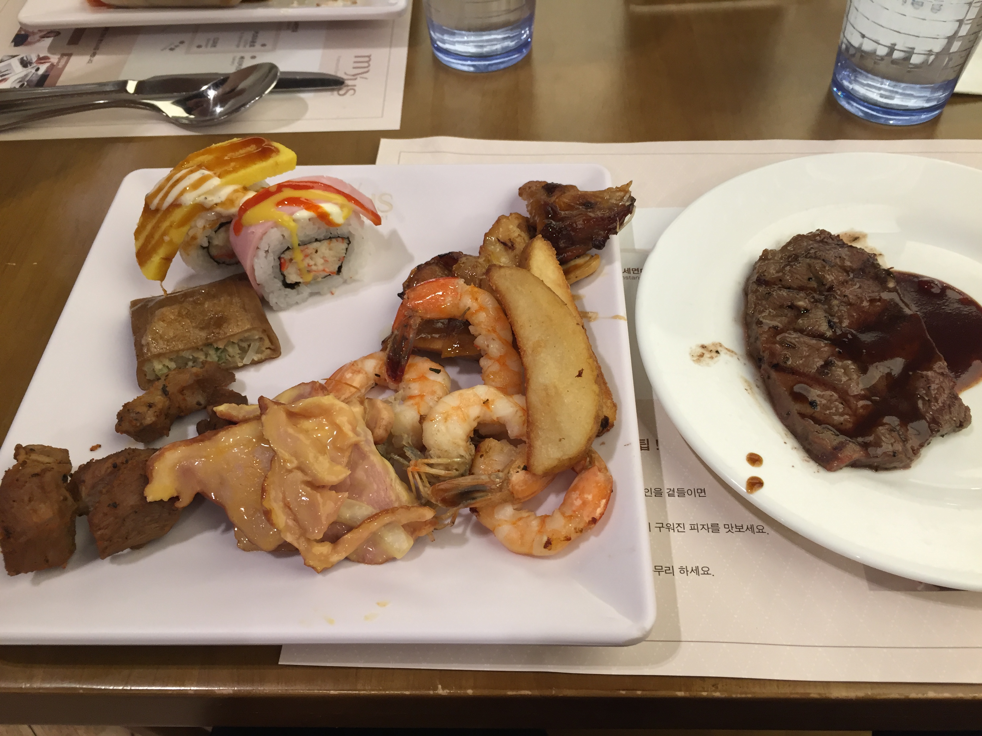 살만 발라내 구운 새우와 스테이크가 부드러우면서도 너무 맛있어서 기분이 좋았습니다.
