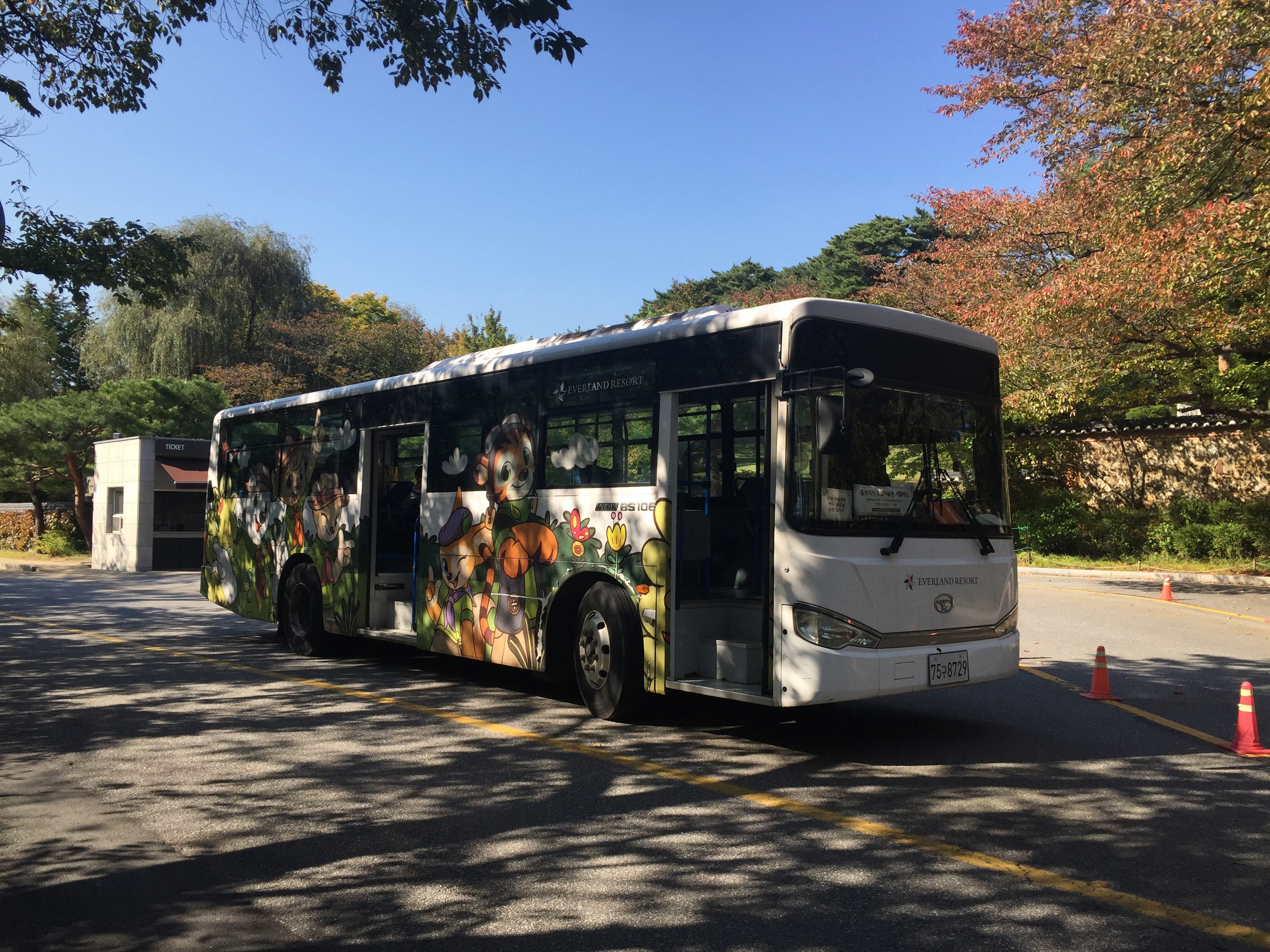 에버랜드 내부를 달리는 이 셔틀버스는 일반적인 시내버스보다 길이가 더 긴데요.