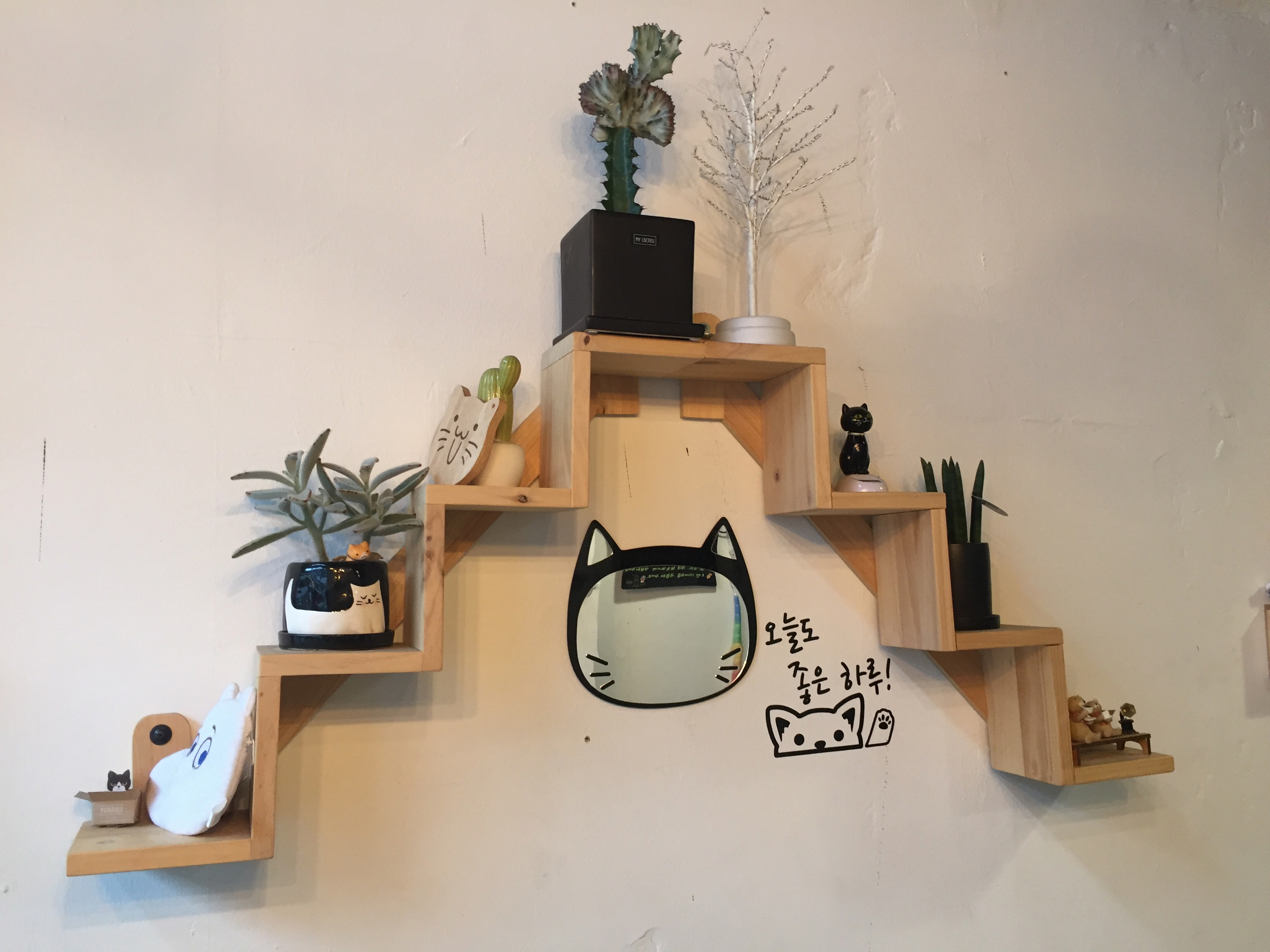 가게 벽면을 고양이 소품으로 가득 채워놨네요.