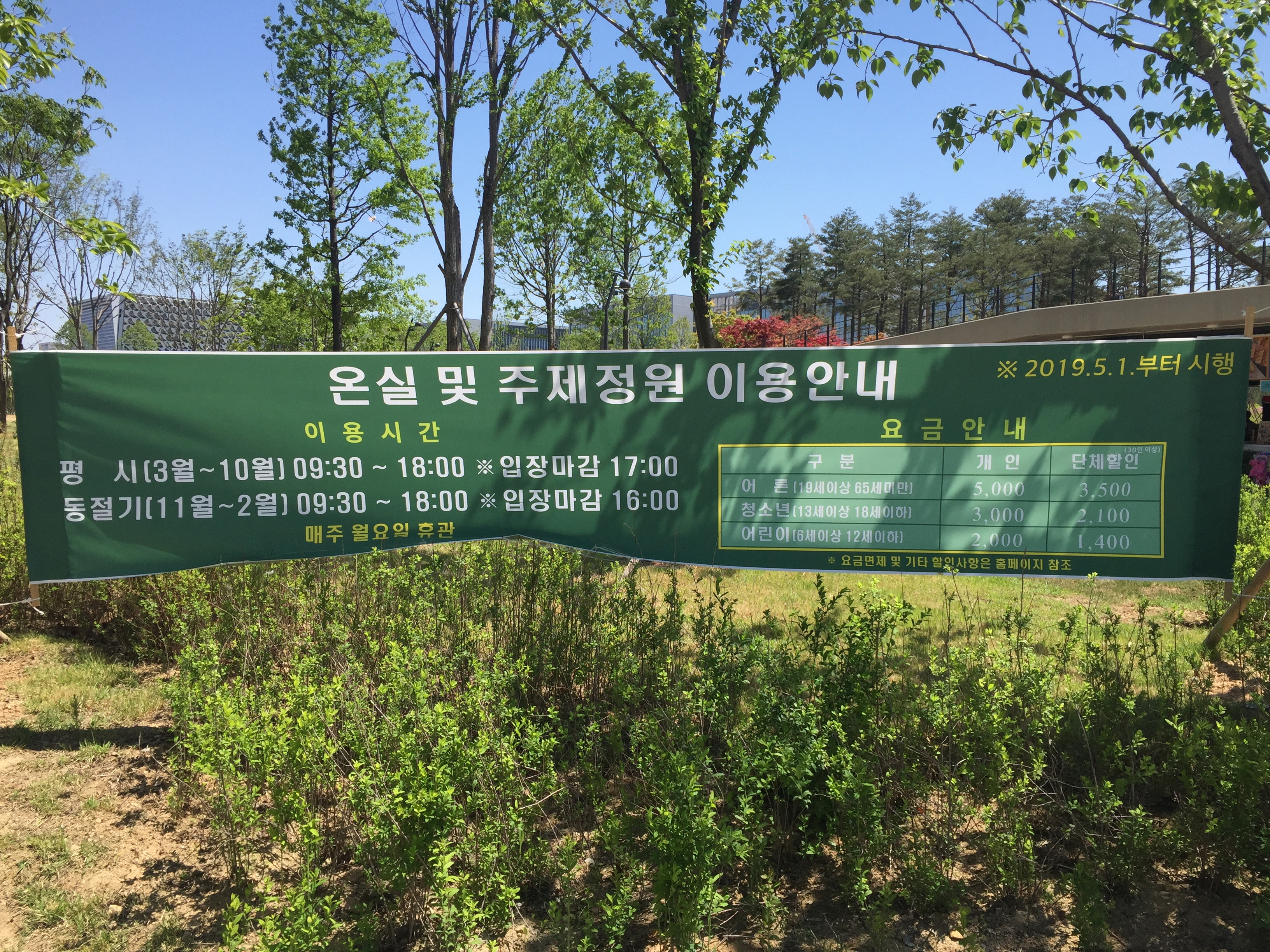5월 1일부터 시범운영을 마치고 온실과 주제정원 관람에 입장료를 받기 시작해서