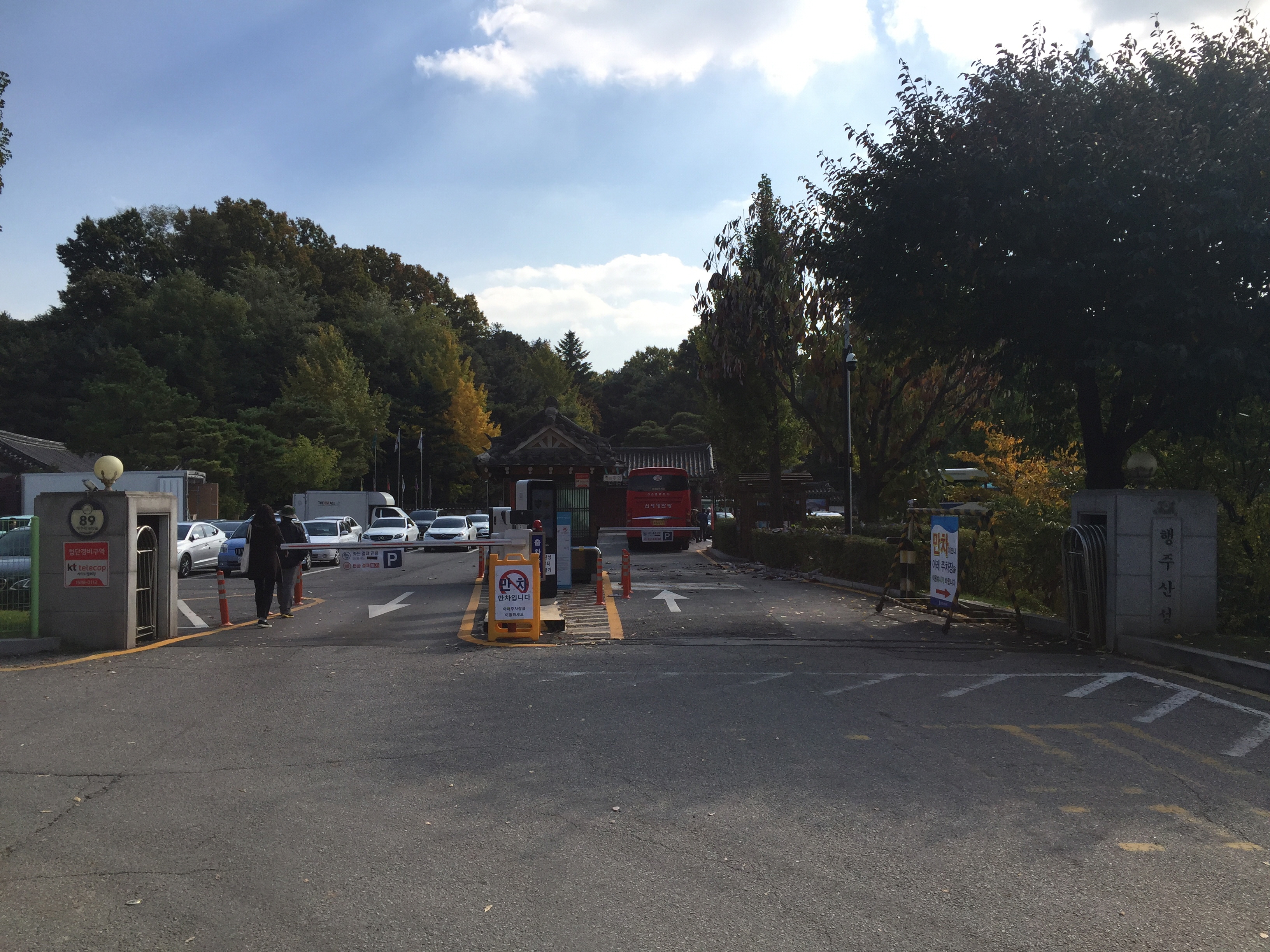 행주산성 입구에 있는 주차장을 지나