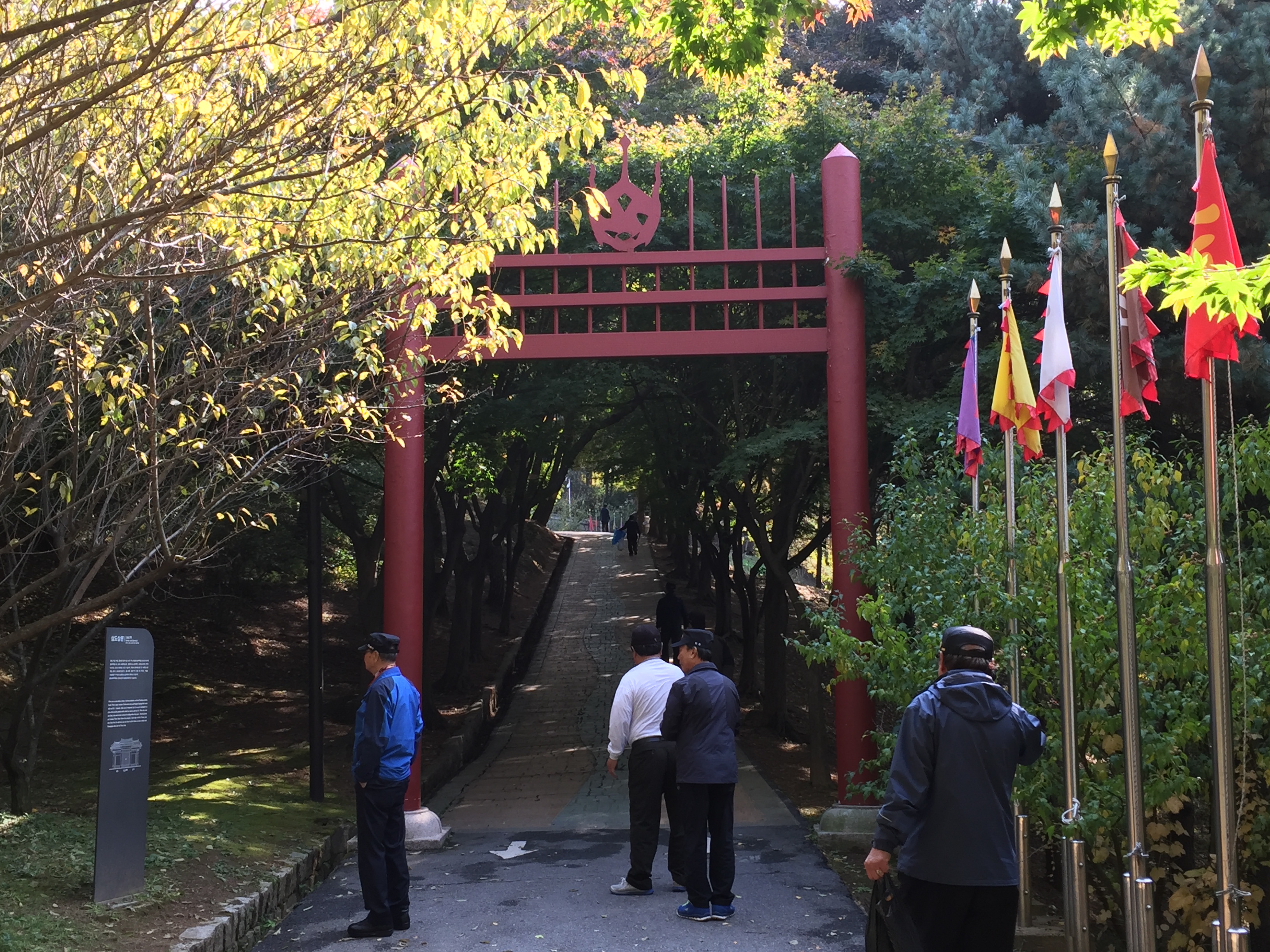 등산로를 쭉 따라가다 홍살문이 있는 옆길로 빠지면