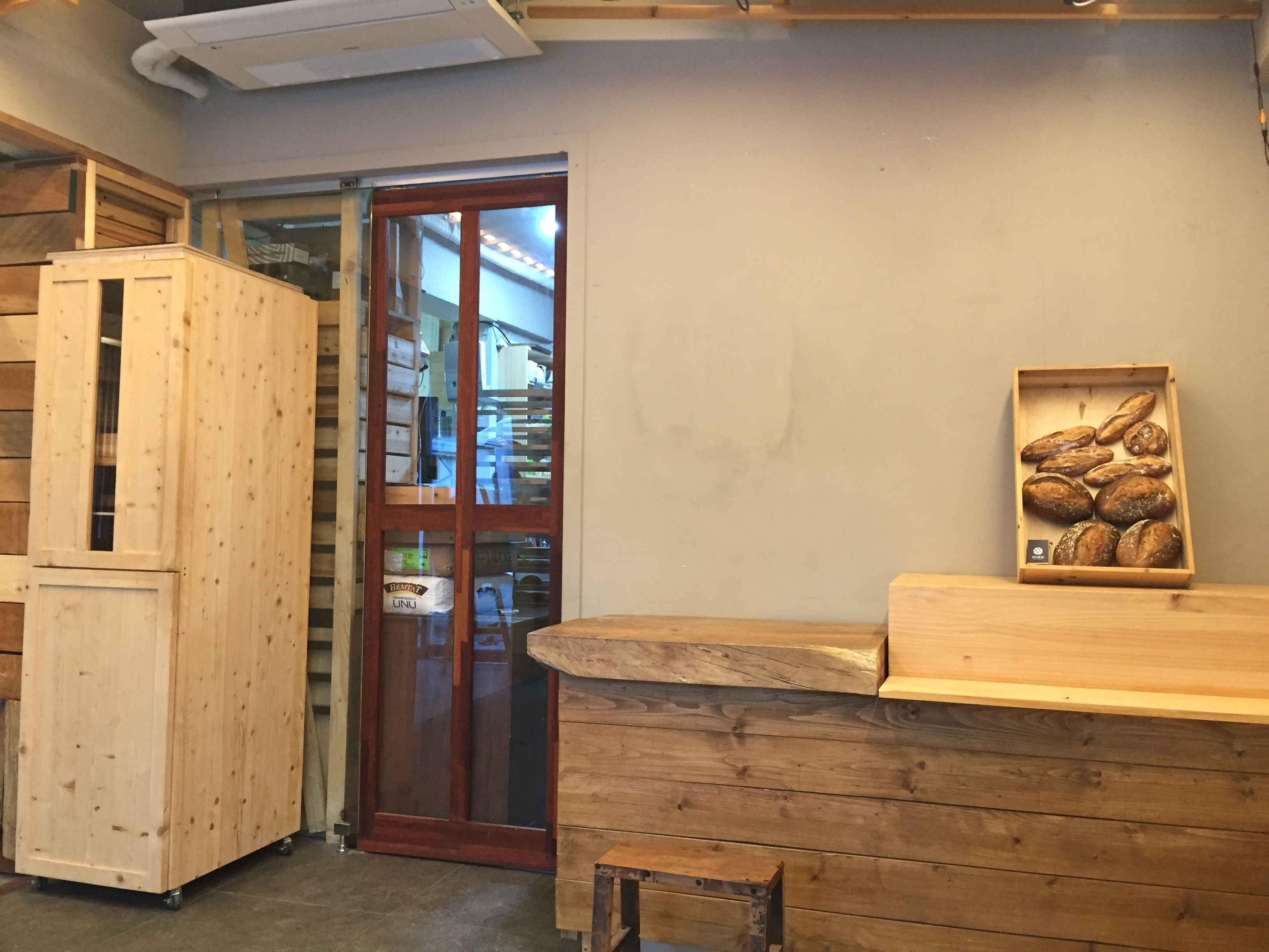 얼핏 보면 목공소인가 하는 생각이 들게 만드는 인테리어를 가진 이곳은 바로 빵집입니다.