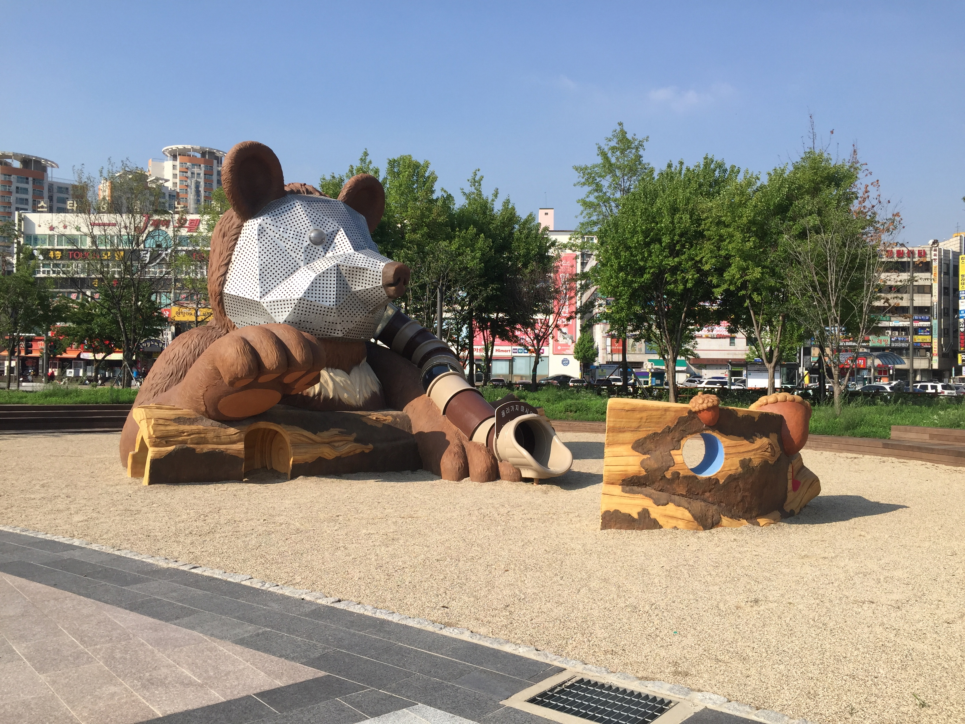 하도 더워서 분수에서 시원하게 물을 맞는 아이들이 많네요.