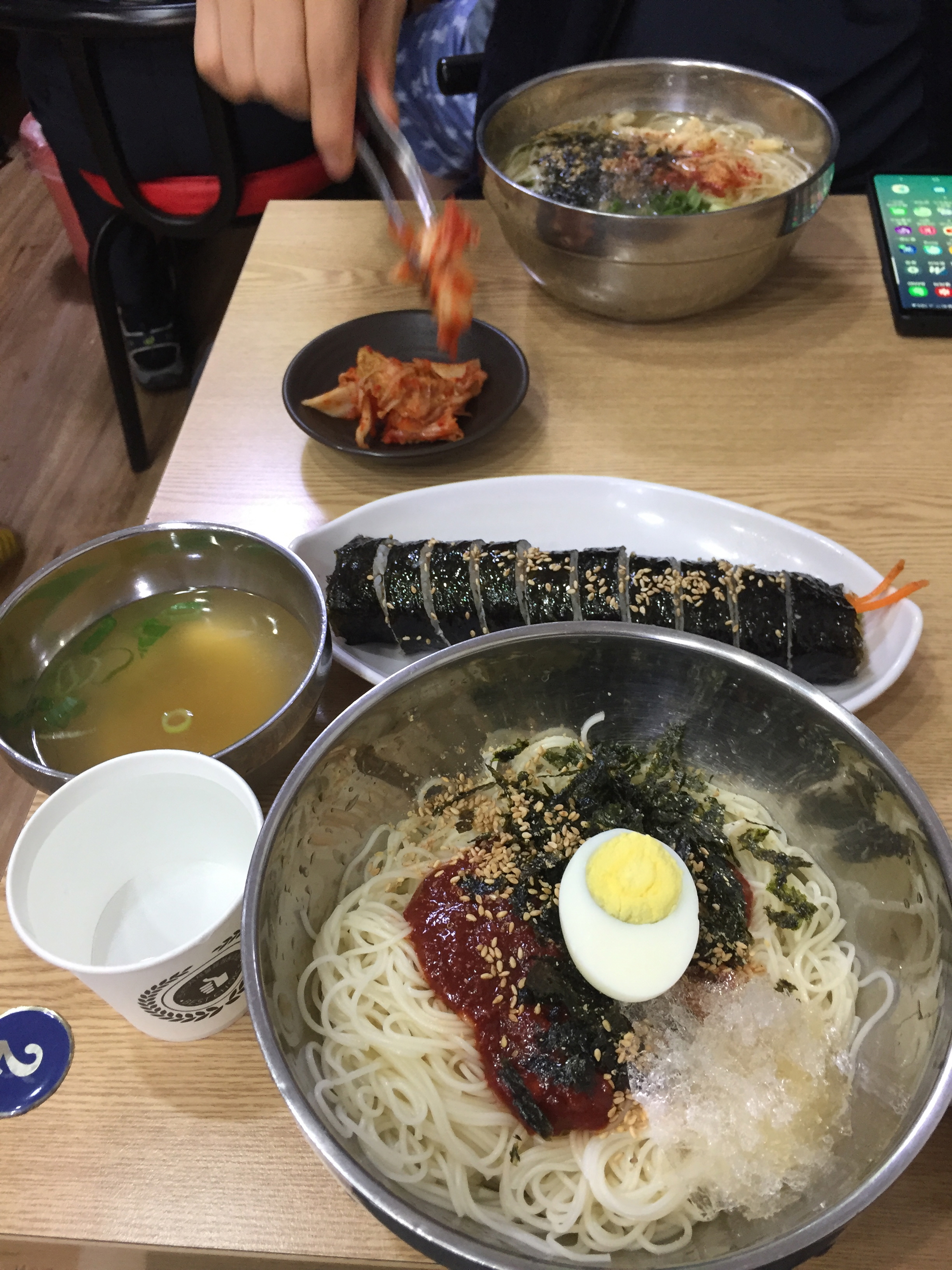 비빔국수를 다 먹은 뒤 김밥과 함께 멸치육수를 마셔보니